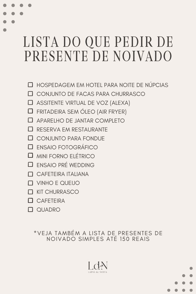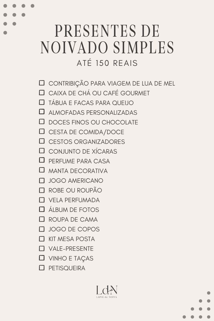 - Lista de presente de noivado simples até 150 reais