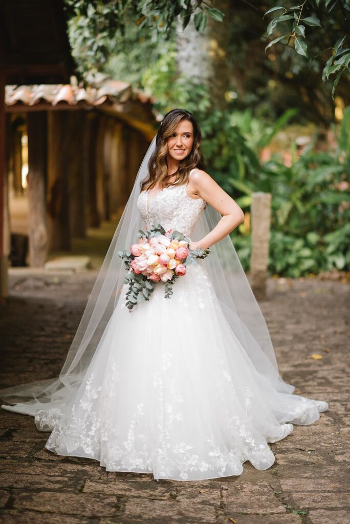 Ela nos entregou antes da cerimônia, pediu que ficássemos nós duas de olhos fechados e quando abrimos, estava lá o buquê bem semelhante, somente com a cor diferente.”
