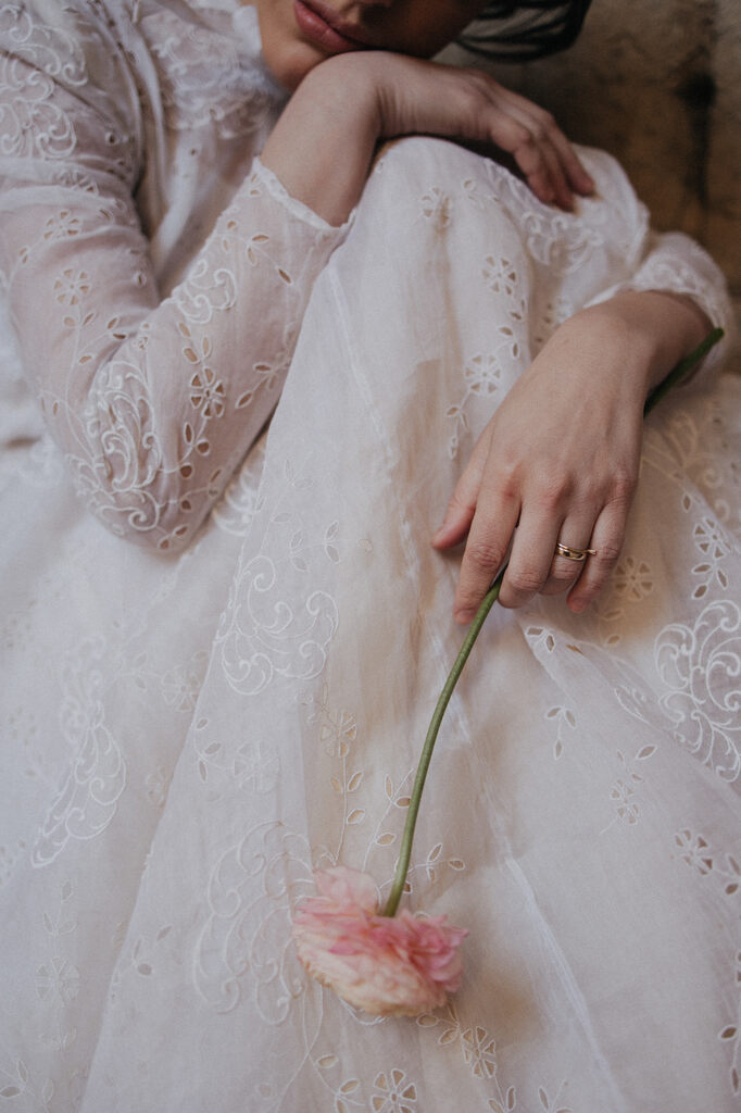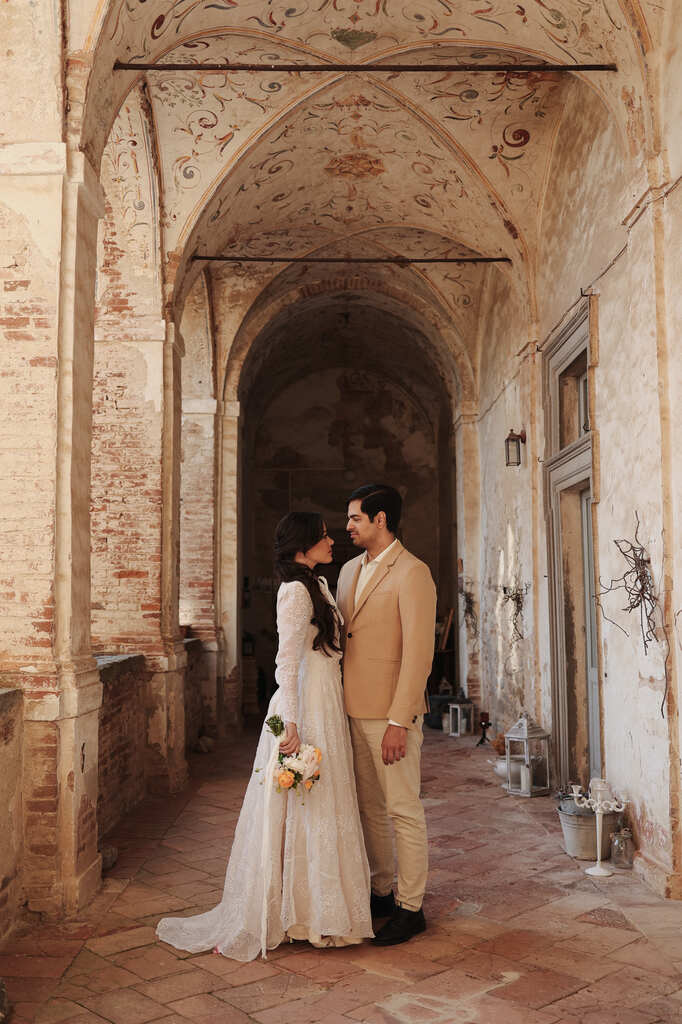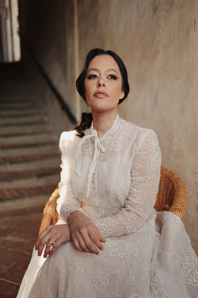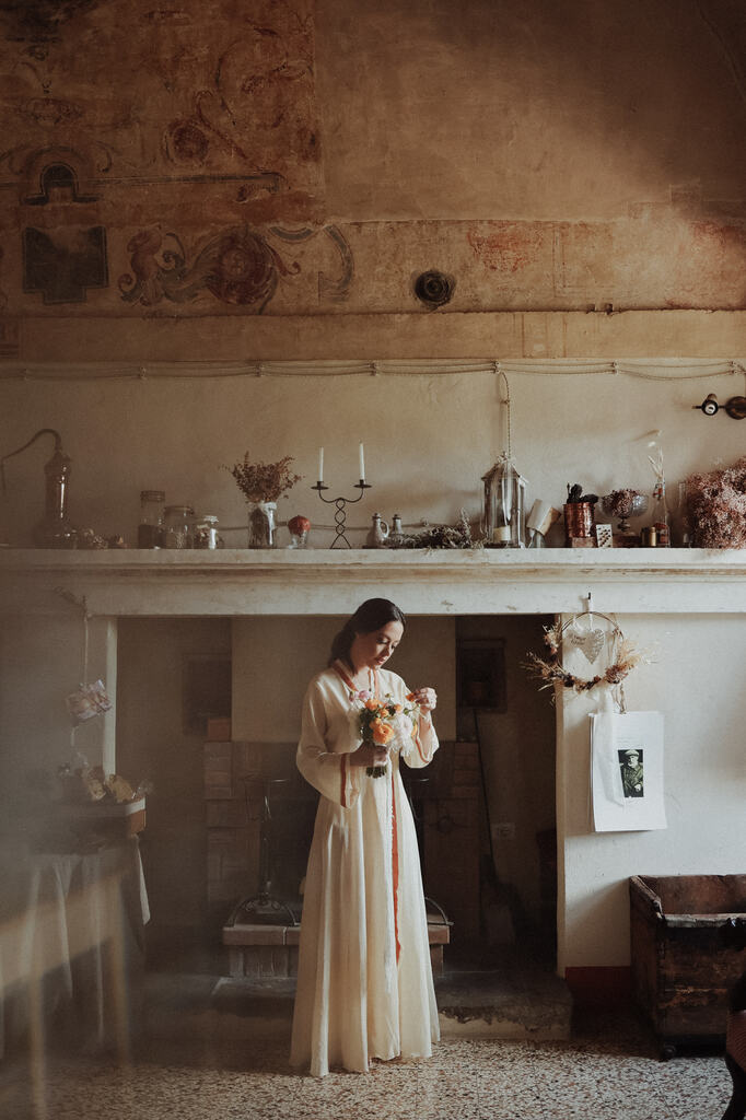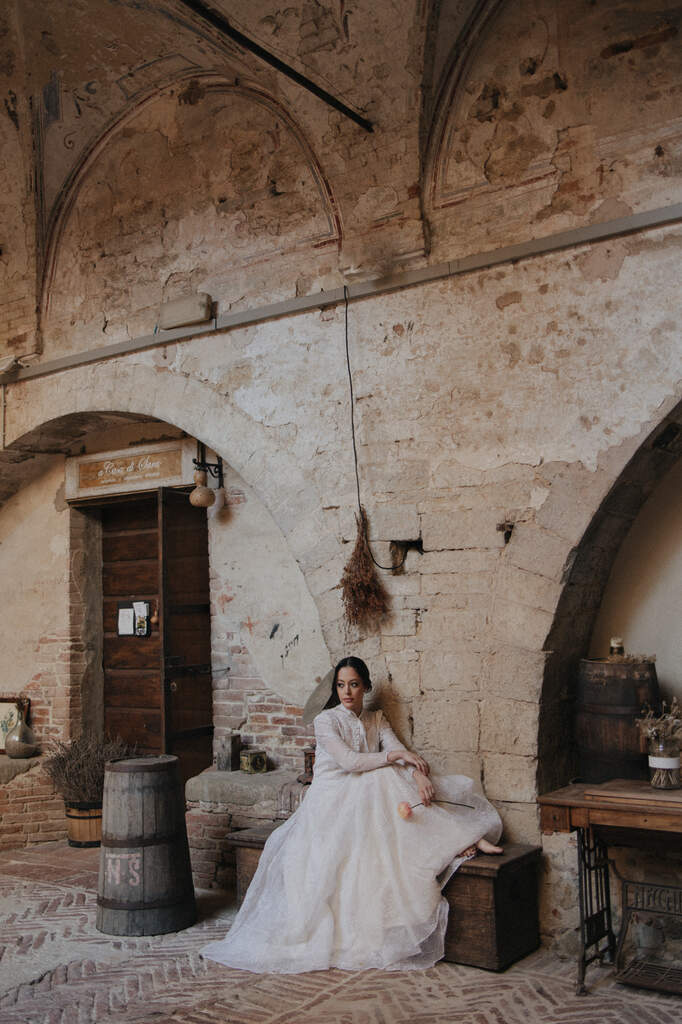 Encontramos uma abazzia em Perugia, região da Toscana. E nossa fotografa maravilhosa embarcou na nossa ideia e ainda conseguiu um vestido vintage usado por gerações de uma família italiana.”