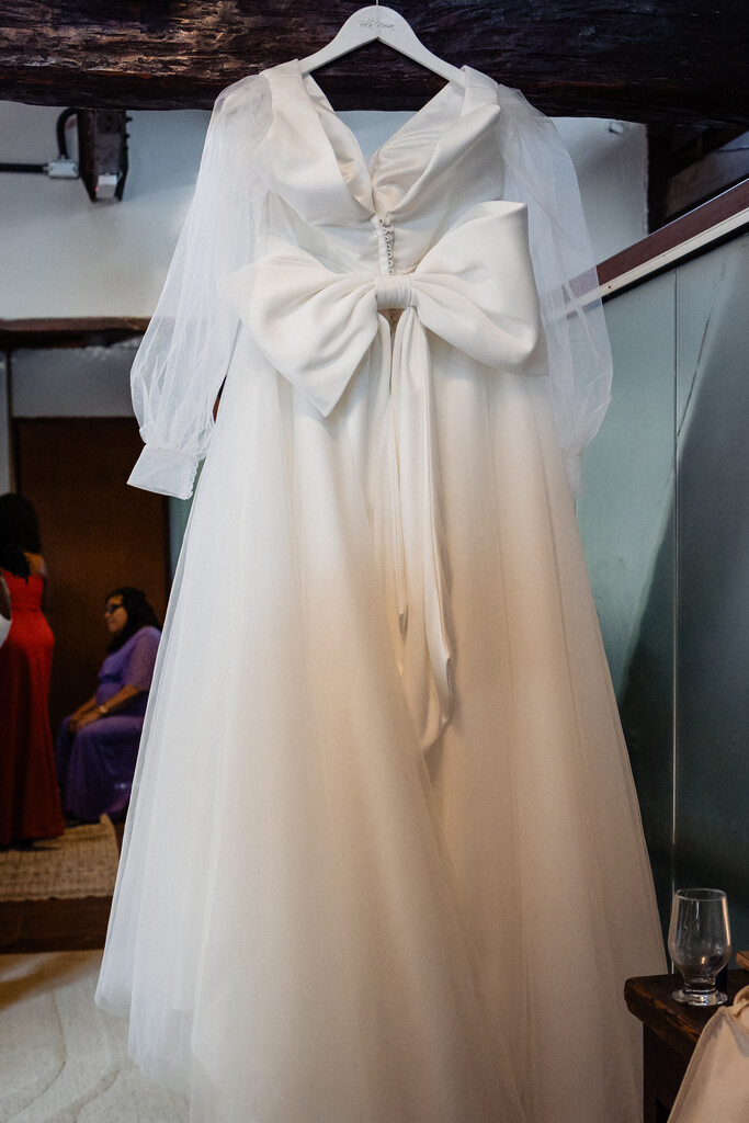 Mas é claro que tinha que ter um toque de tendência, né? O laço nas costas arrematou o look!