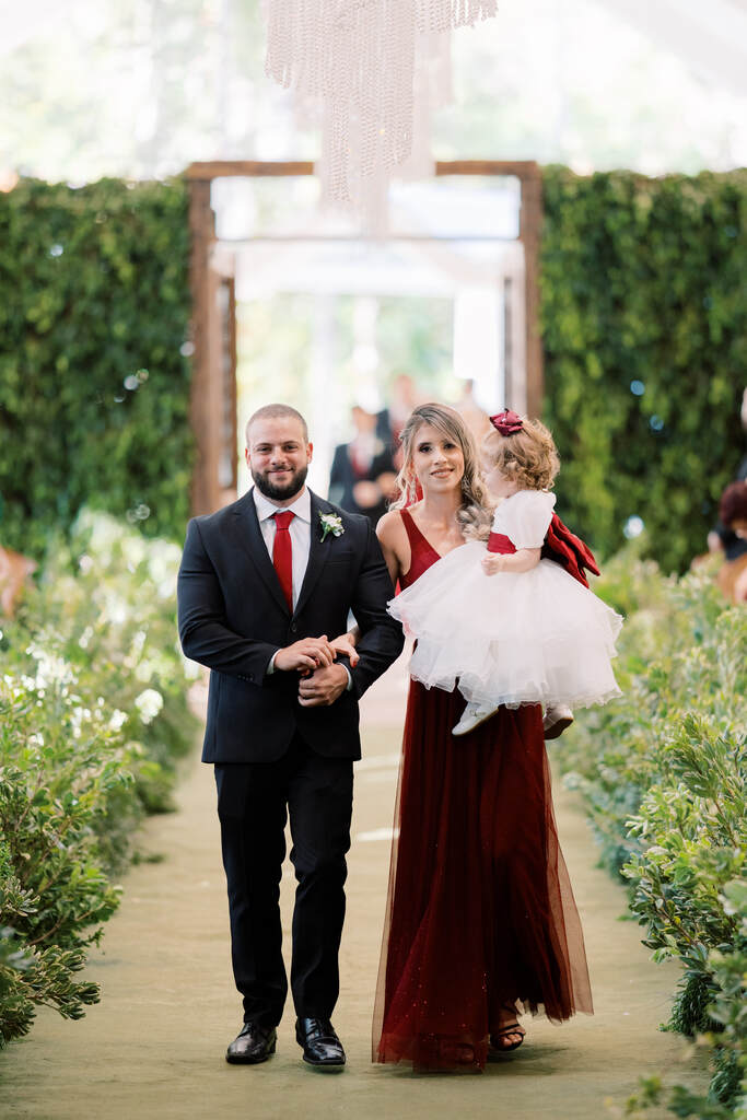 É claro que a cor para as madrinhas e padrinhos não poderia ser outra! Aliás, esse tom mais fechado de vermelho carrega um ar de sofisticação difícil de superar.