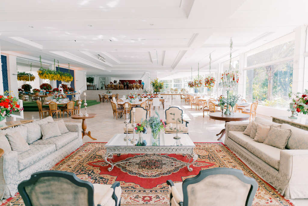 Nada melhor do que começar o dia com um casamento impactante, não é mesmo? A combinação de cores surpreendeu e ainda decoração trouxe aquela atmosfera de jardim para um salão fechado.