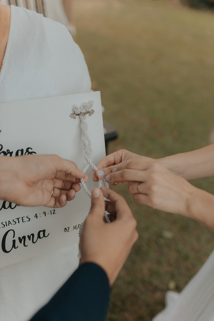 -o cordão de três dobras, que simboliza o casal e Deus unidos em uma aliança forte e inquebrável;