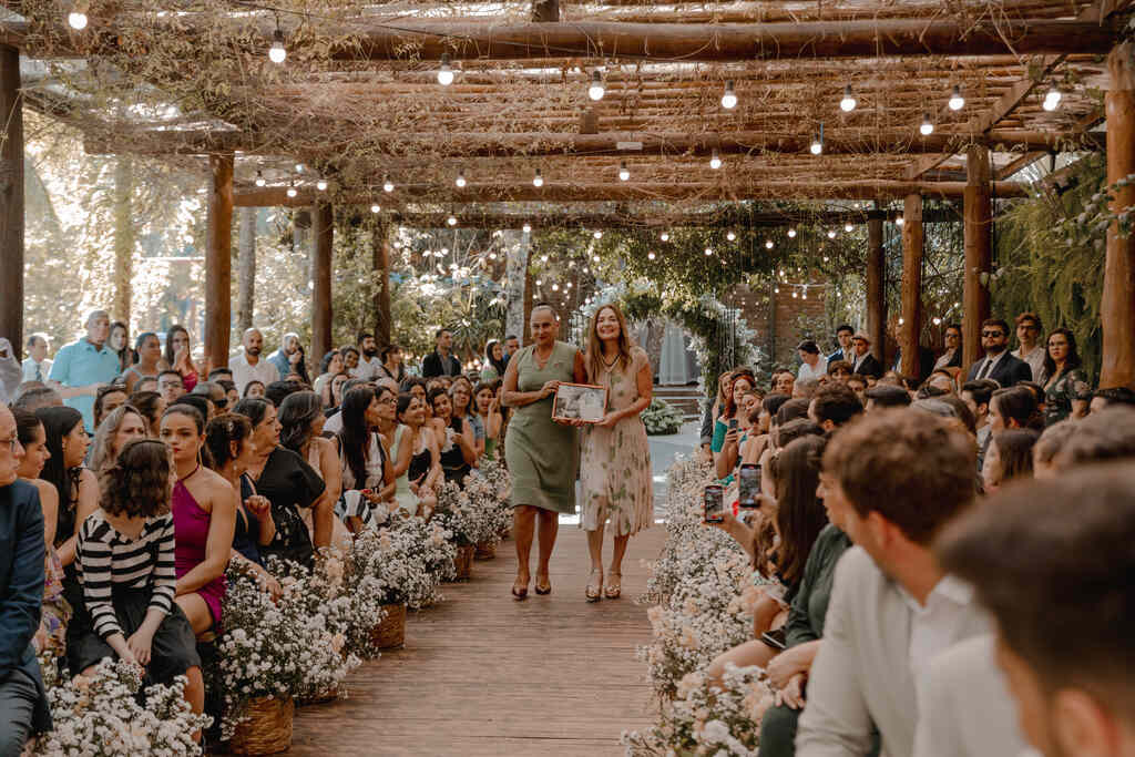 Cada entrada foi emocionante! Principalmente as daminhas com toda a sua fofura e energia, e as demoiselles, que tiveram a honra de levar os porta-retratos. Aliás, essa é oportunidade perfeita para fazer uma homenagem póstuma.