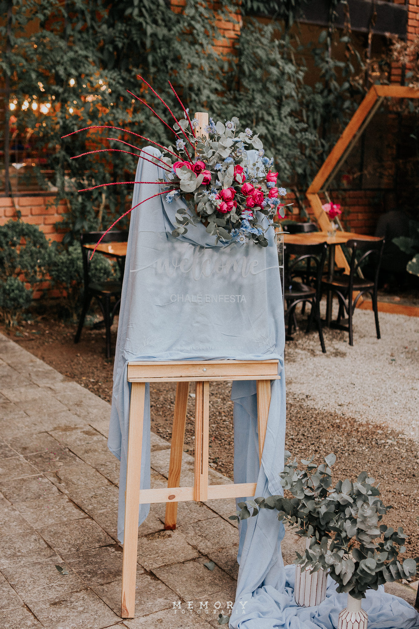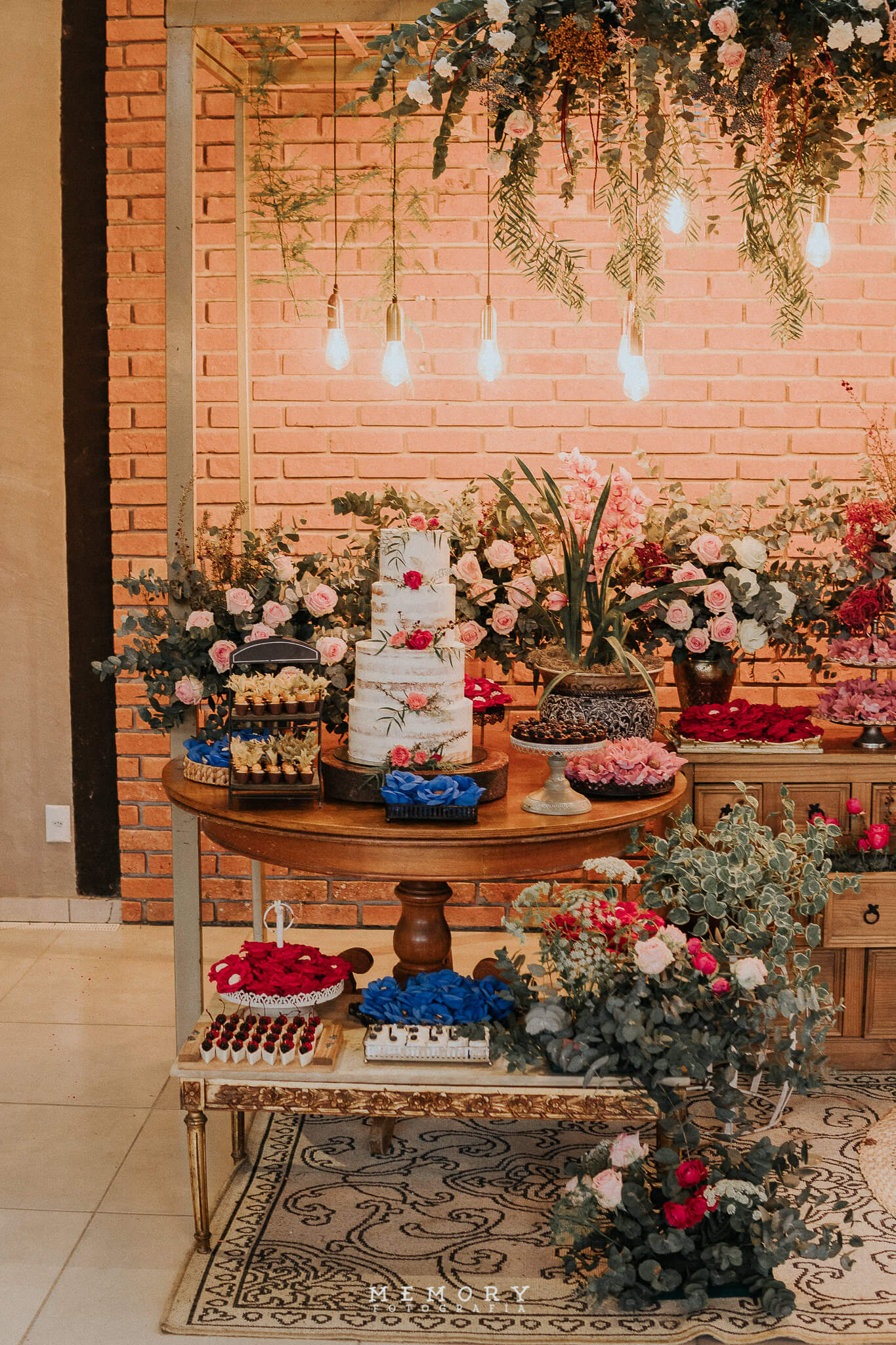 A decoração foi criada com a carinha do casal, num estilo rústico e romântico e com as cores azul serenity. Essa união, e o look dos noivos, criou uma atmosfera única que expressava perfeitamente a Daiana e o Niedson.