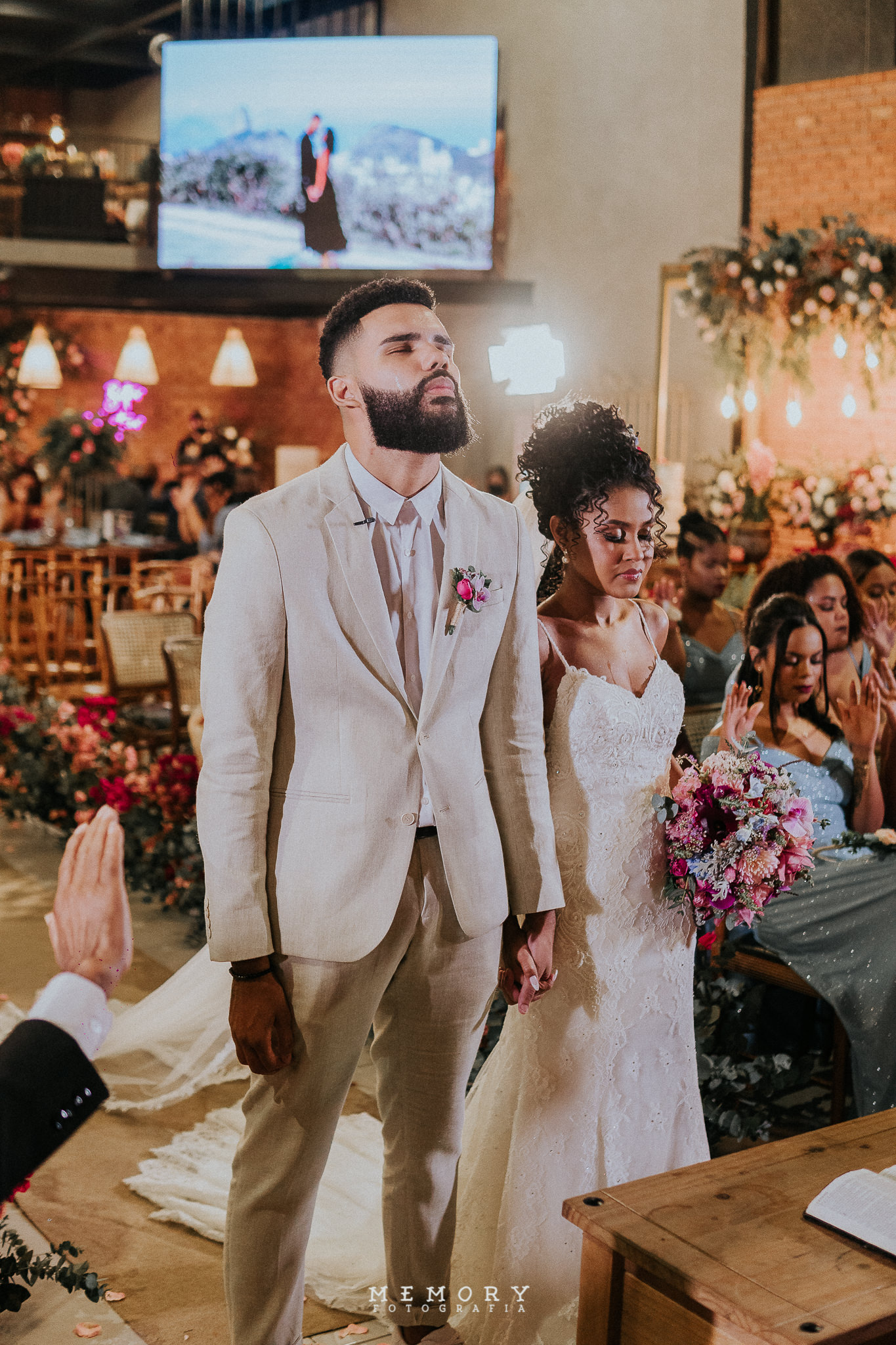 As lágrimas começaram antes mesmo do casamento em si. Quando Niedson viu a decoração pronta e ouviu a música que a banda tocava, foi impossível segurar o choro, lembrando de tudo que tinham passado para chegar ali. Mas durante a entrada e os votos, os dois vivenciaram juntos a emoção e foram preenchidos pela maior felicidade do mundo.