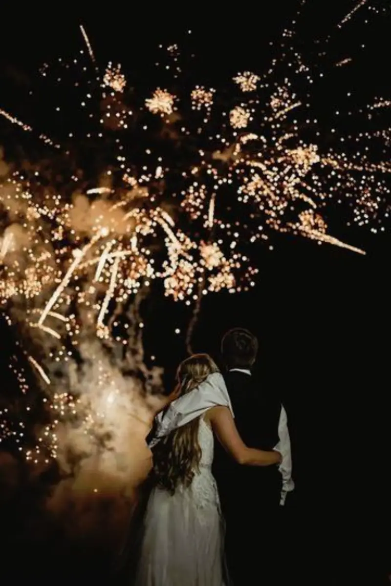 Para uma saída dos noivos deslumbrante, aposte em um show de fogos de artifício. Fica perfeito para iluminar o céu durante a noite, e ainda vai garantir um entretenimento inesquecível aos convidados.