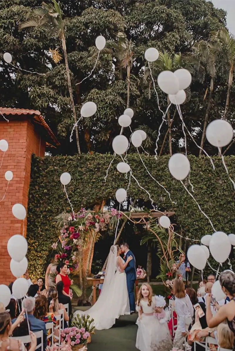 Os balões podem dar um efeito maravilhoso na saída dos noivos! É importante que os mesmo sejam cheios de gás hélio, que flutua, assim quando os noivos tiverem saindo, os convidados podem soltar os balões para o ar.