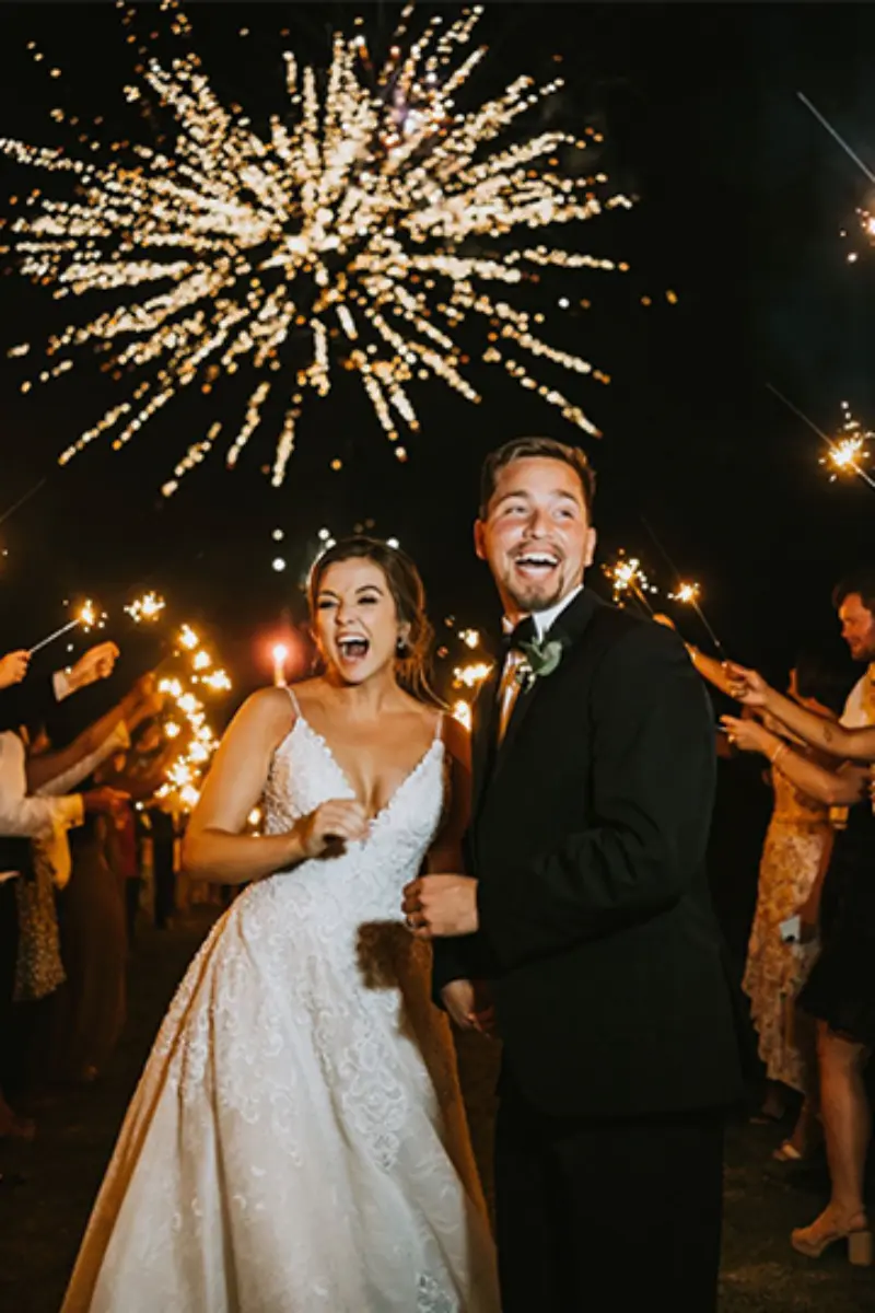 Sabe aquelas velas compridas que ficam soltando “foguinhos”? Elas são chamadas de sparkles. Sparkle em inglês quer dizer brilhar, e tem coisa mais brilhosa do que elas? Os sparkles são perfeitos para aquelas cerimônias que terminam a noite, pois o efeito na fotografia ficará um show, além de muito romântico.
