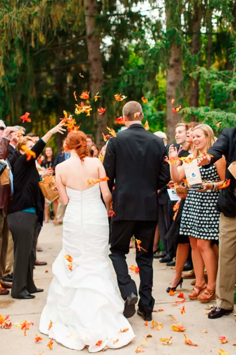 Vai se casar no outono? Imagina que incrível ficaria a sua saída enquanto os convidados jogam em vocês folhas secas com aquela coloração alaranjada outonal lindíssima? Se você for casar no campo então o efeito ficará deslumbrante!