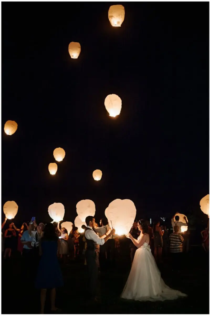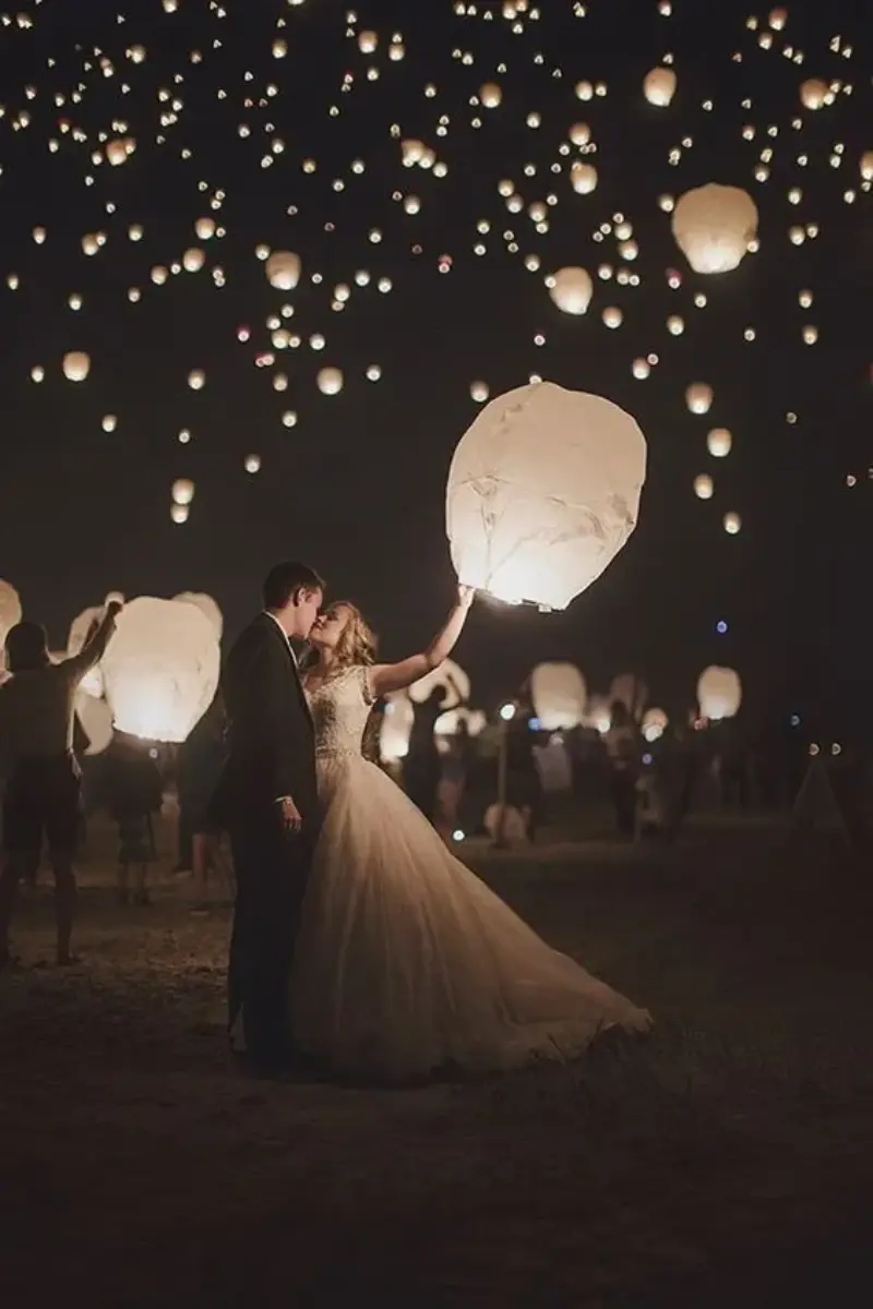 Quando acendida, ela se enche com o ar do ambiente e flutua em direção ao céu. Fica lindo na saída dos noivos em um casamento à noite ao ar livre.