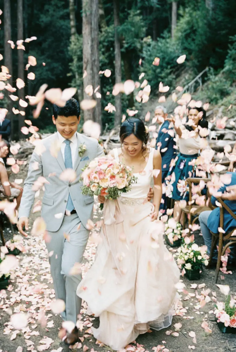 Pra nós a opção mais romântica para substituir o arroz. As pétalas mais comumente usadas são as de rosa (que inclusive você encontra em versão sintética no mercado), mas nada impede que você use a pétala da flor de sua preferência, ou até um mix de pétalas variadas.