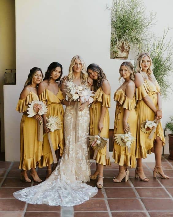 Marfim – quer fugir do branco, mas sem abrir mão da elegância? O tom marfim é uma opção mais suave e acolhedora. Fica lindo com vestidos em tons de marfim ou nude, trazendo uma vibe sofisticada.