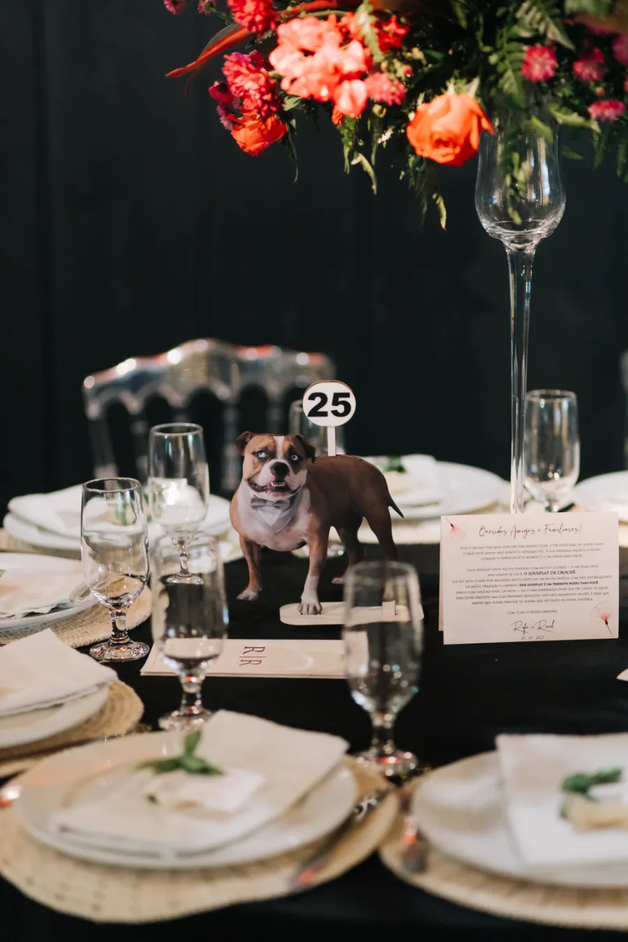 A decoração foi marcante, com detalhes do cachorrinho e diy feito pela família da noiva.