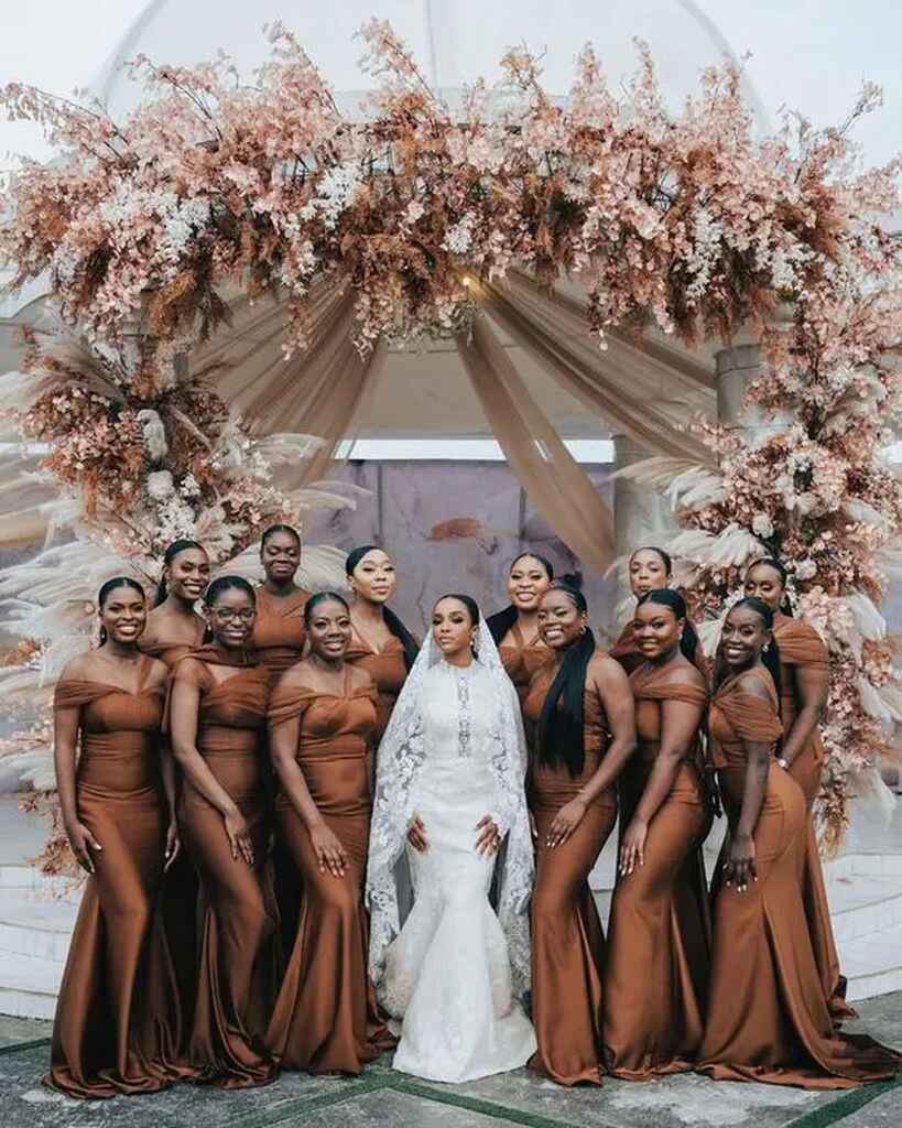 Mas, após o Mocha Mousse ser eleito a cor de 2025 pela Pantone, o cenário mudou. Agora os tons de marrom também podem ganhar ares modernos e elegantes, principalmente se for usado pelas madrinhas.
