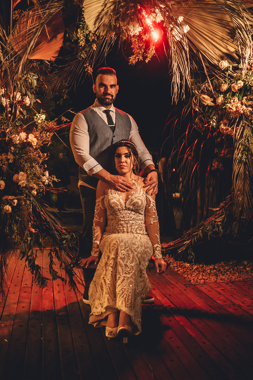 Nesse dia a previsão era de chuva, mas os noivos foram surpreendidos com um clima totalmente diferente com um belíssimo pôr do sol para fechar o dia com chave de ouro!