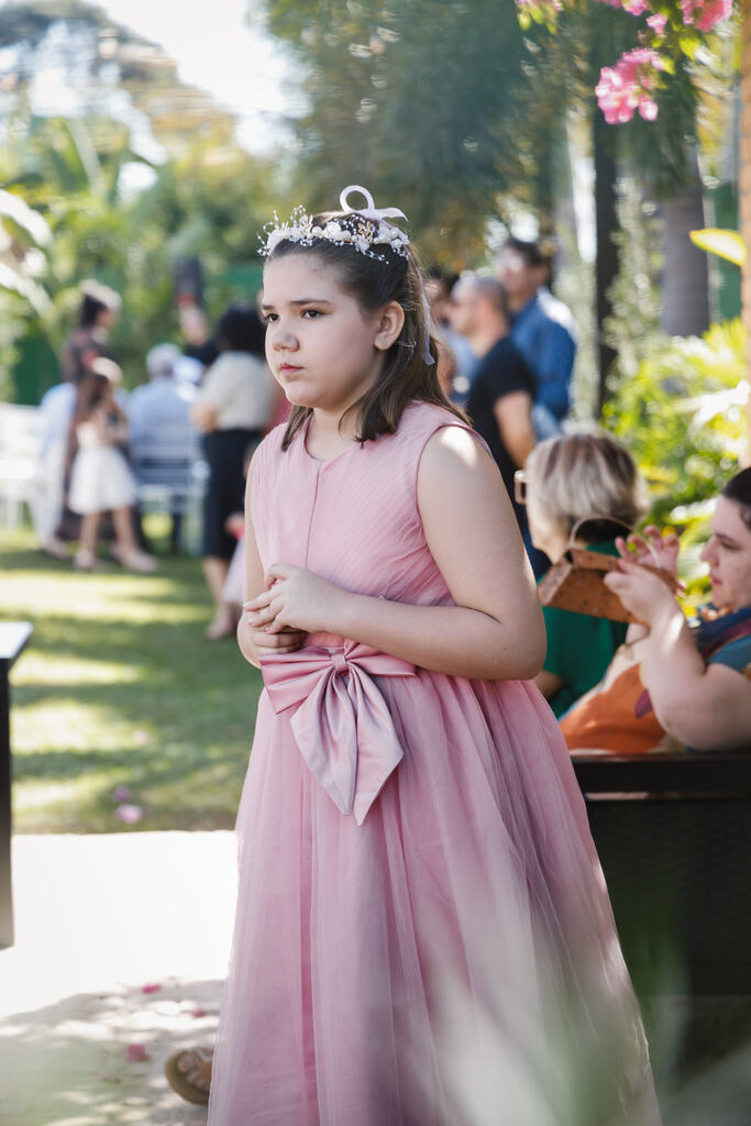 Optei também pelo fúcsia para as mães, rosa-canela para as demoiselles e rosa claro para a dama de honra.