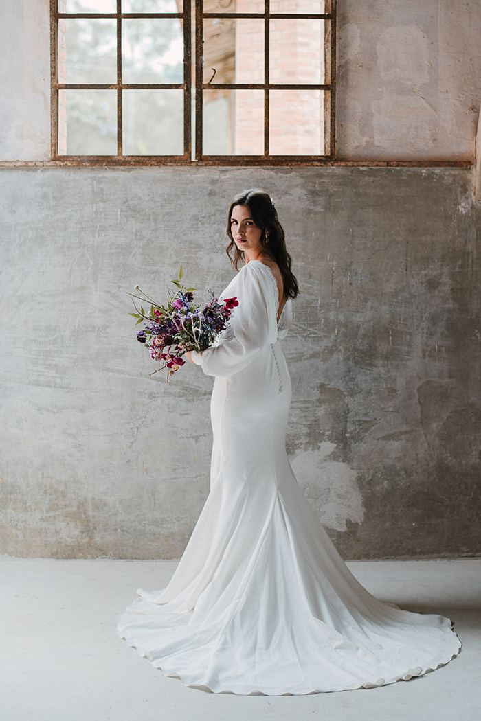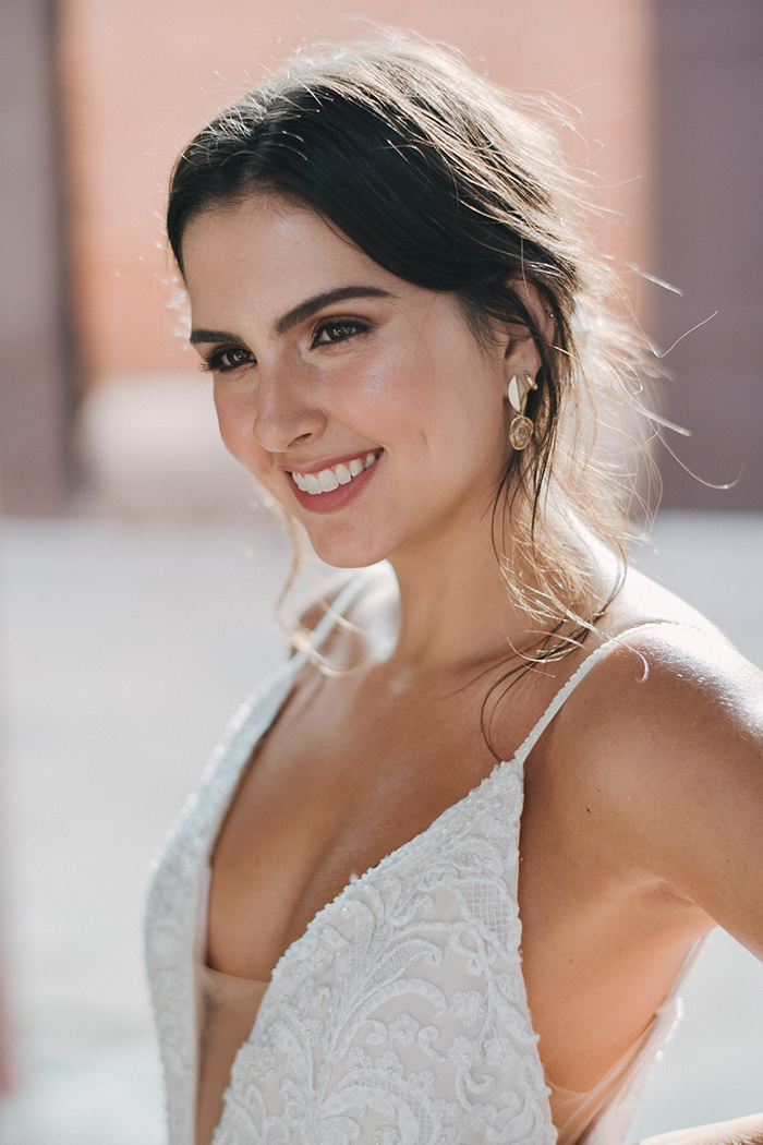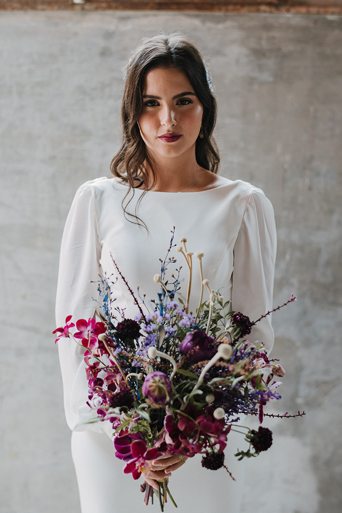 Para esta edição do SIMples, a noiva usou dois vestidos do Atelier Luit. O primeiro look, de mangas longas e decote canoa, ficou elegante e minimalista. A Camila White deixou os cabelos soltos e ondulados, com uma beleza natural, também seguindo a linha minimalista.