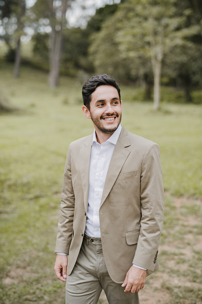 O Jonatas estava elegantérrimo com um traje azul marinho da Woodlouse. No segundo look, mais descontraído, ele usou suspensórios d’ O Francês Gravataria em couro, coordenando com o terno em areia queimada e camisa branca.