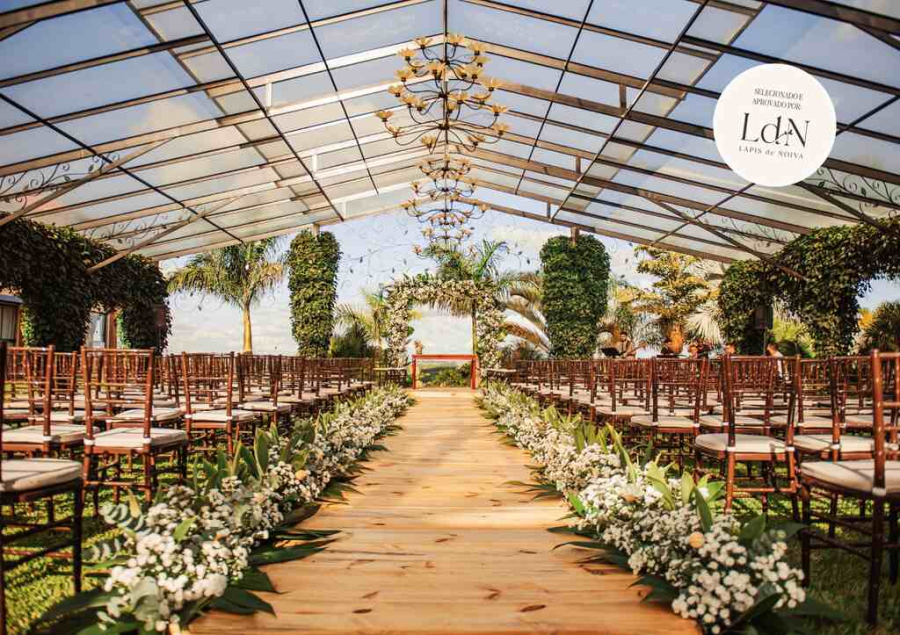 O local possui duas opções para cerimonial ao ar livre. Sendo que uma delas possui uma linda estrutura acrílica, chamada de Capela de Vidro.
