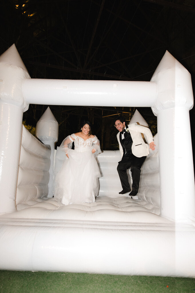 noivos pulando no pula pula