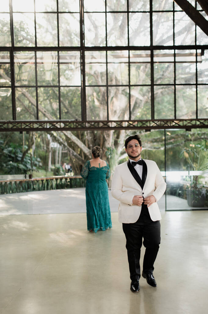 Também tive o first look com o meu pai, ele estava de óculos, mas era nítido o quão emocionado estava.