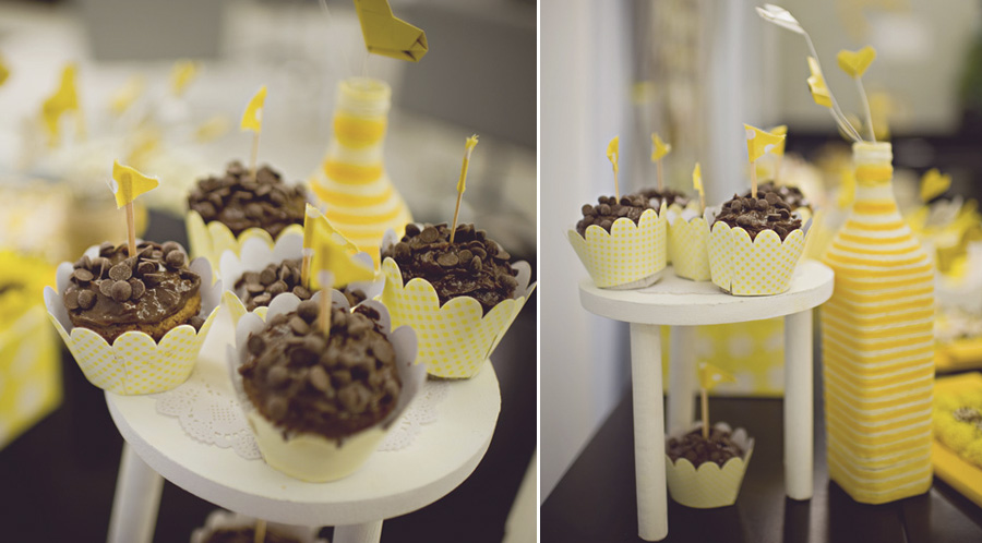 pro chá da Ju a gente fez no tom de azul turquesa e depois pintamos de branco e amarelo para usar no meu chá.