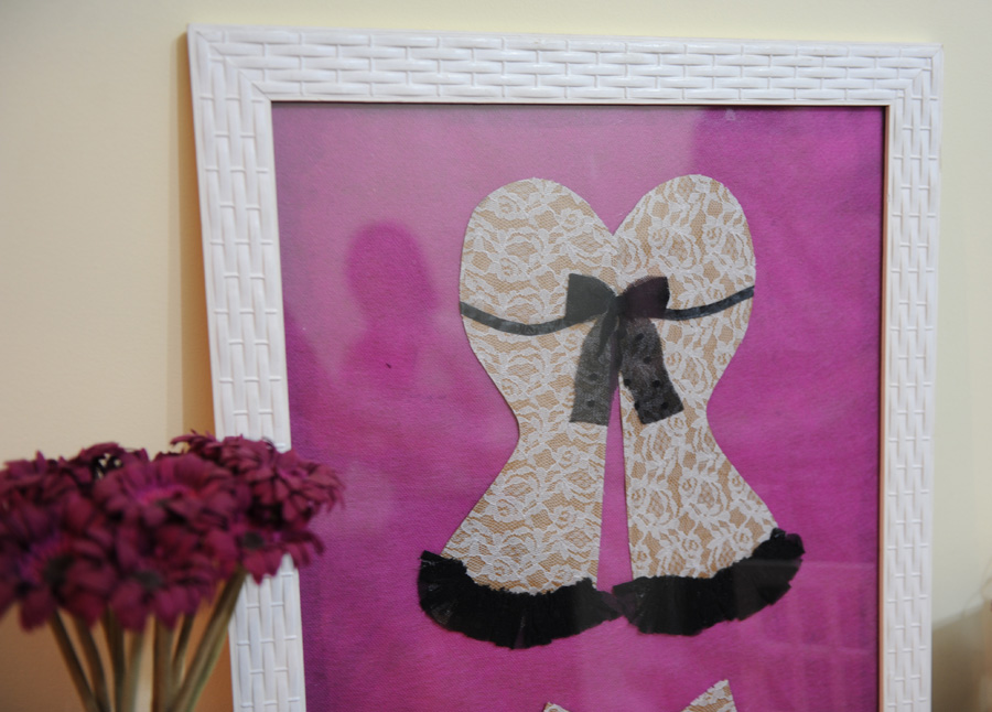 uma moldura comum para foto eu utilizei no meu chá bar, com fundo de tecido amarelo e escrito em cisal, também usei no chá de lingerie, com fundo rosa pink  e depois usei no casamento, com fundo rendado e nossa foto.