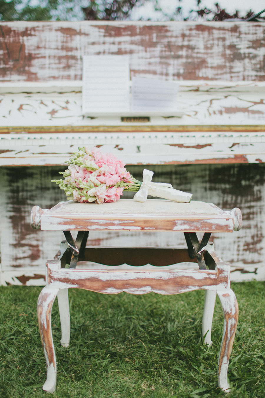 foi pintado de branco para servir de decoração no casamento da Ju e, depois, lixado e envelhecido para ser tocado no meu casamento.