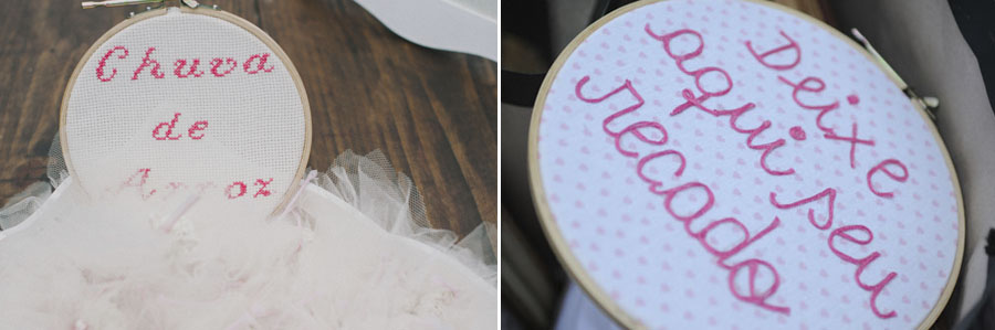 como eu amo bastidores! eles são tão versáteis! usei no chá bar, com tecidos e barbantes no tom amarelo, e no casamento, com rendinhas, em ponto cruz, em cisal e linha rosa.
