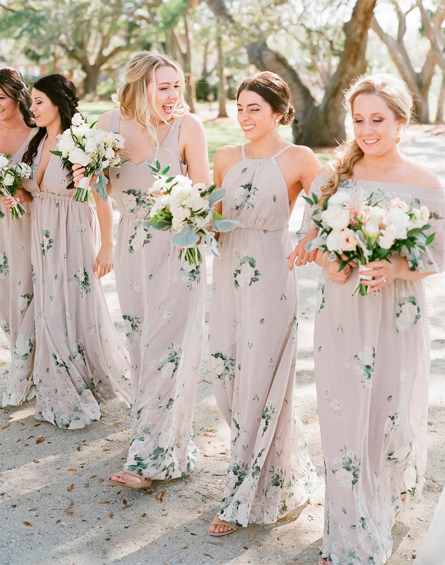 2022 traz com muita força a nossa conexão com a natureza. Assim como os vestidos de noiva, espere ver lindos e fluídos vestidos com estampas florais para madrinhas, que prometem harmonizar perfeitamente com casamentos diurnos.