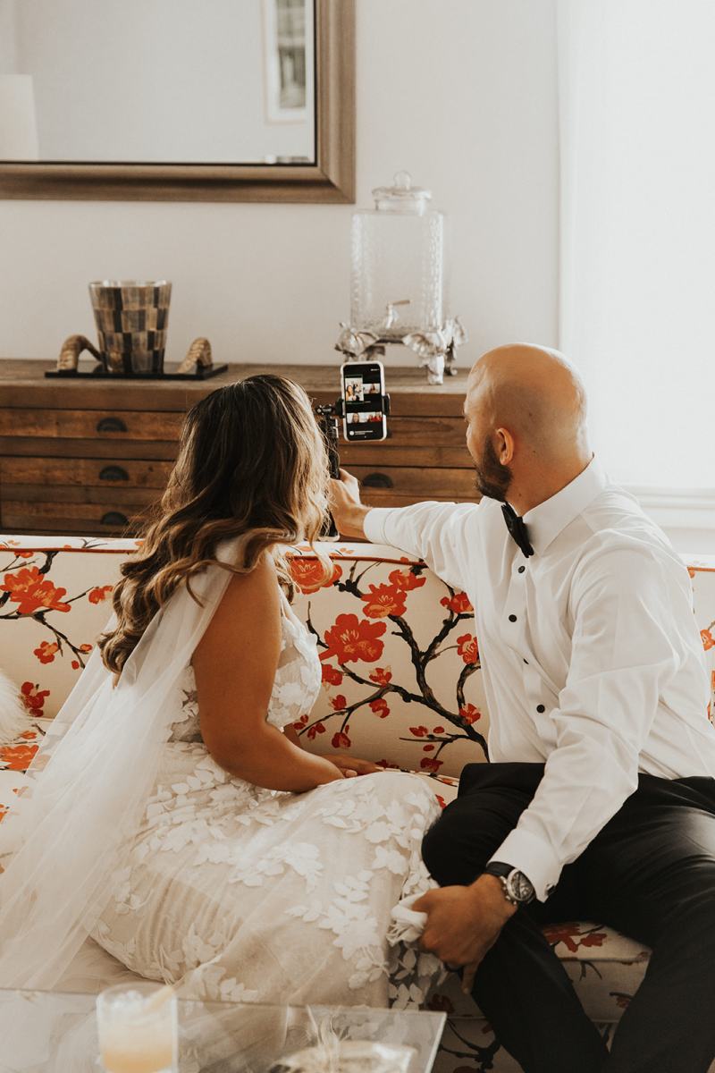 Não importa se os noivos dizem SIM num elopement ou num microwedding com livestreaming, com uma lista de convidados reduzida, os casais não se esquecem dos convidados que não poderão estar fisicamente com eles. Já começamos a ver aqui no blog casais criativos que desejam que os entes queridos celebrem a ocasião junto com eles enviando um pacote de comemoração aos convidados para que eles brindem à distância com um kit contendo um coquetel personalizado ou uma mini garrafa de champanhe, um mini bolo de casamento e docinhos.