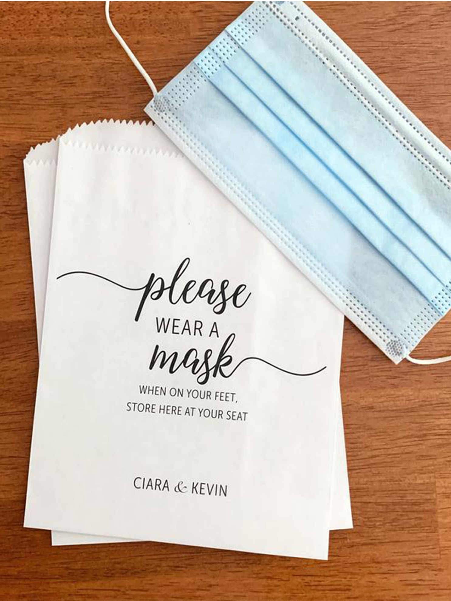 Além disso, os casais podem oferecer luvas e máscaras aos convidados (em cores ou estampas que combinem com a decoração e o estilo do dia do casamento). Os fornecedores e staff também devem usar equipamentos de proteção individual.