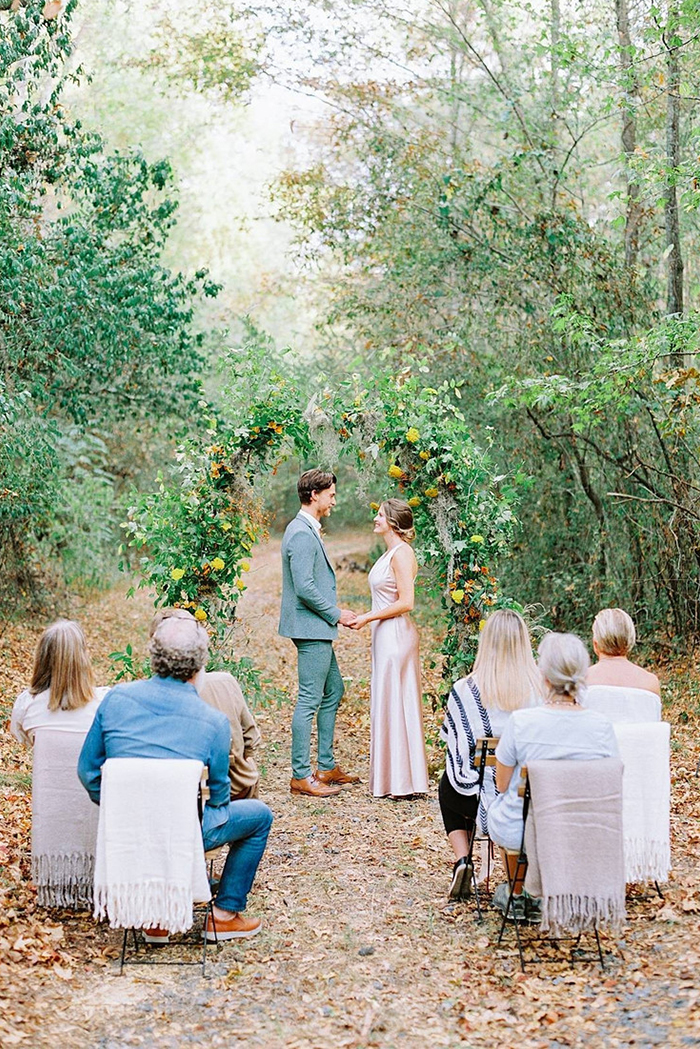Este ano, de uma maneira em geral, existe um novo tipo de código de vestimenta: casual, mas coordenado. Com os elopements e micro weddings os noivos estão adotando roupas informais para todo mundo. A mudança para casamentos intimistas permite maior controle sobre toda a estética, mesmo no que diz respeito aos convidados. Os casais estão vendo as roupas dos convidados como parte de sua decoração.