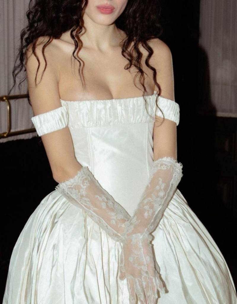 Além do retorno dessas silhuetas, veremos mais vestidos com uso de rendas antigas, renda off-white e elementos como barbatanas e corpetes.