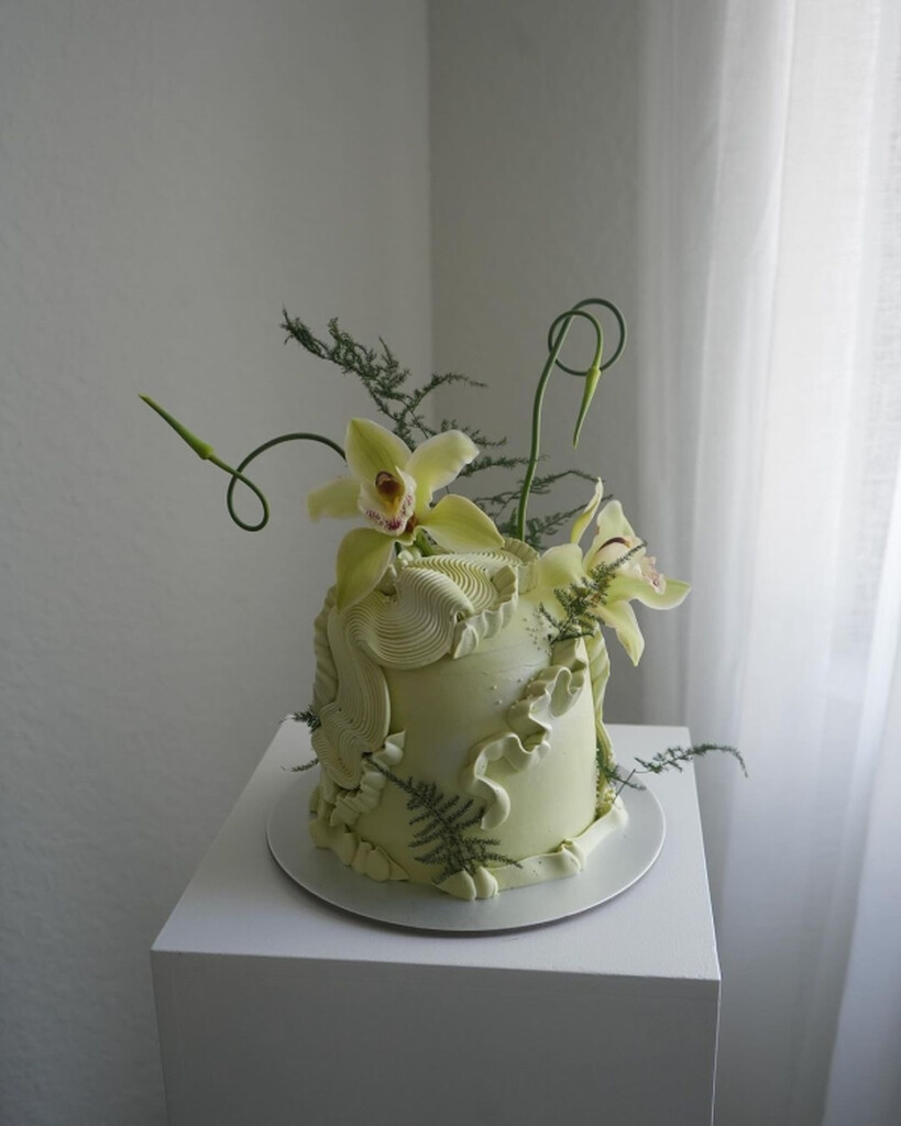 Flores modeladas com glacê, formas esculturais divertidas com várias camadas, buttercream apresentado de forma mais orgânica e crua, combinado com outras técnicas e materiais, como pérolas e spray de veludo, gerarão um efeito dinâmico e tridimensional.