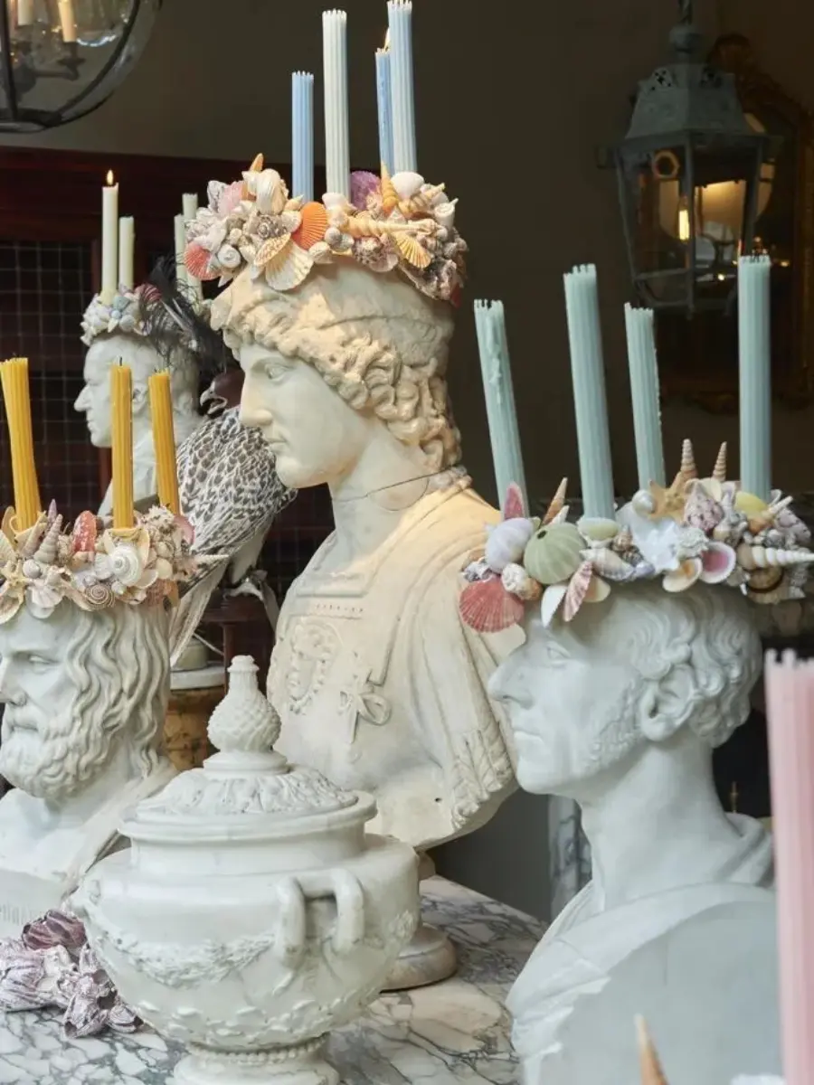 Elementos esculturais, tecidos amplos e detalhes manuais criam cenários que lembram galerias de arte, com sofisticação e toque arquitetônico.