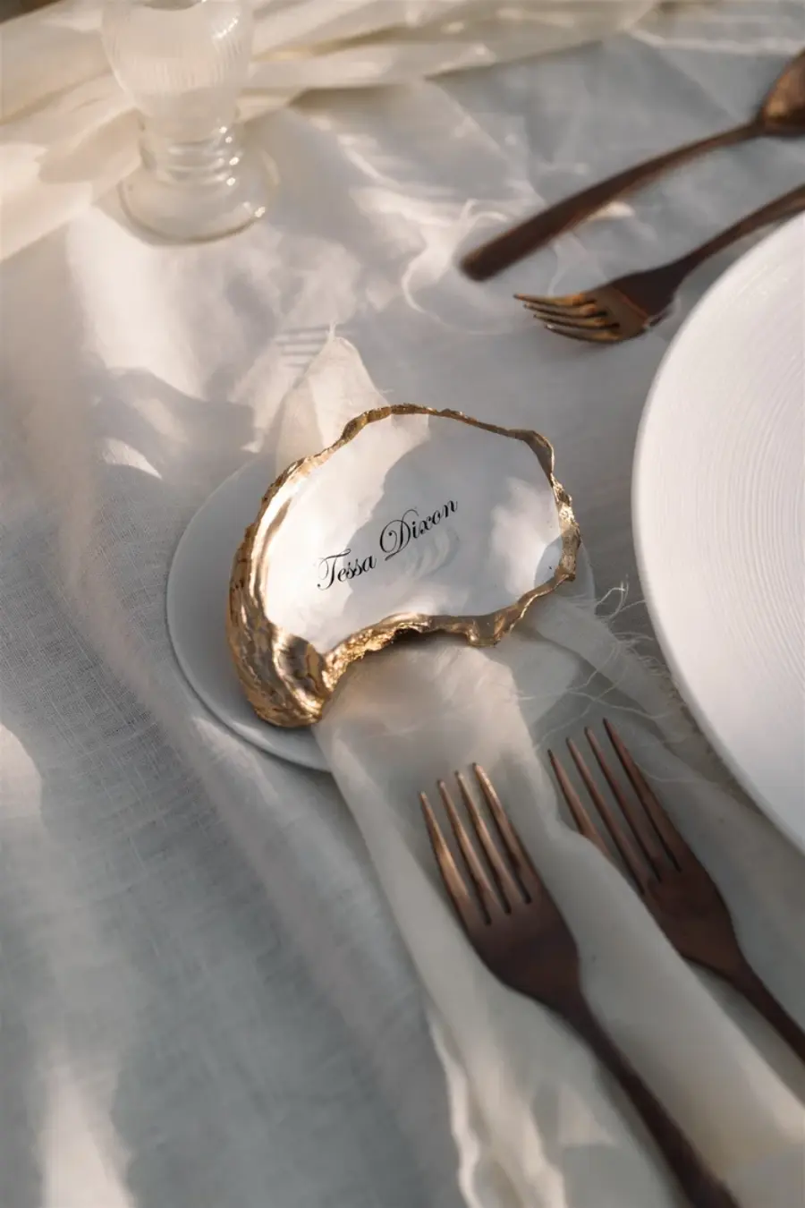 As conchas voltam à decoração com leitura sofisticada, aparecendo em cartões de lugar, objetos decorativos e taças, trazendo elegância e toque lúdico.