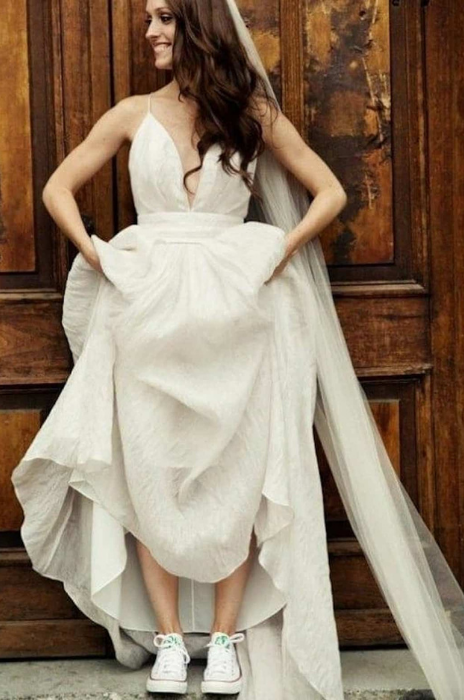 Sem contar, que o tênis faz parte do visual de muitas noivas. Logo, porque não usar um tênis para noiva no dia do casamento?
