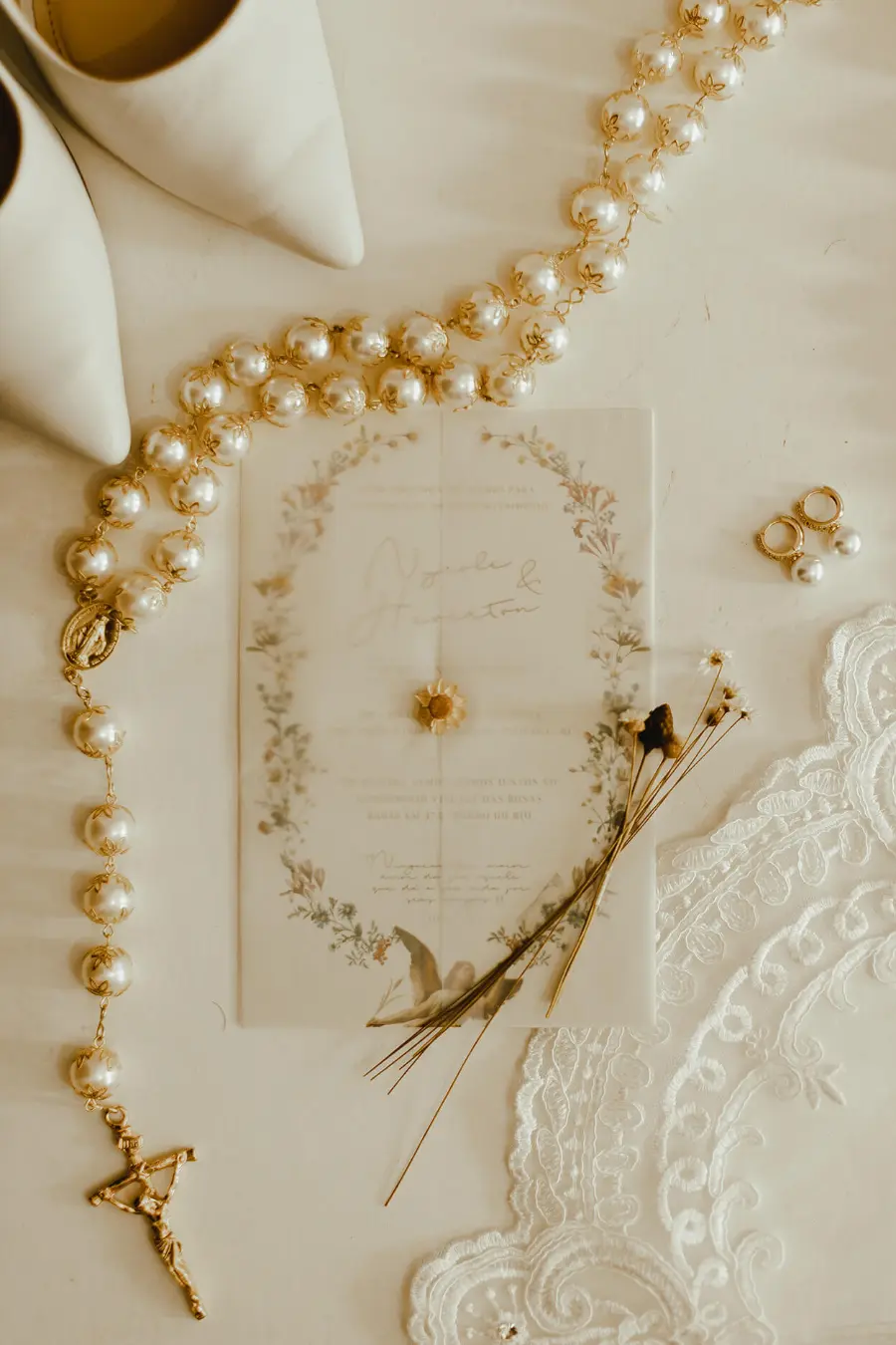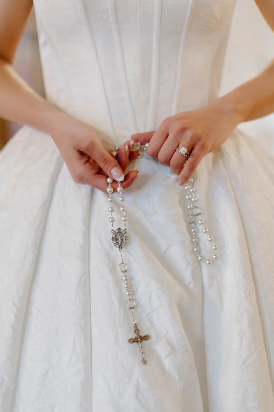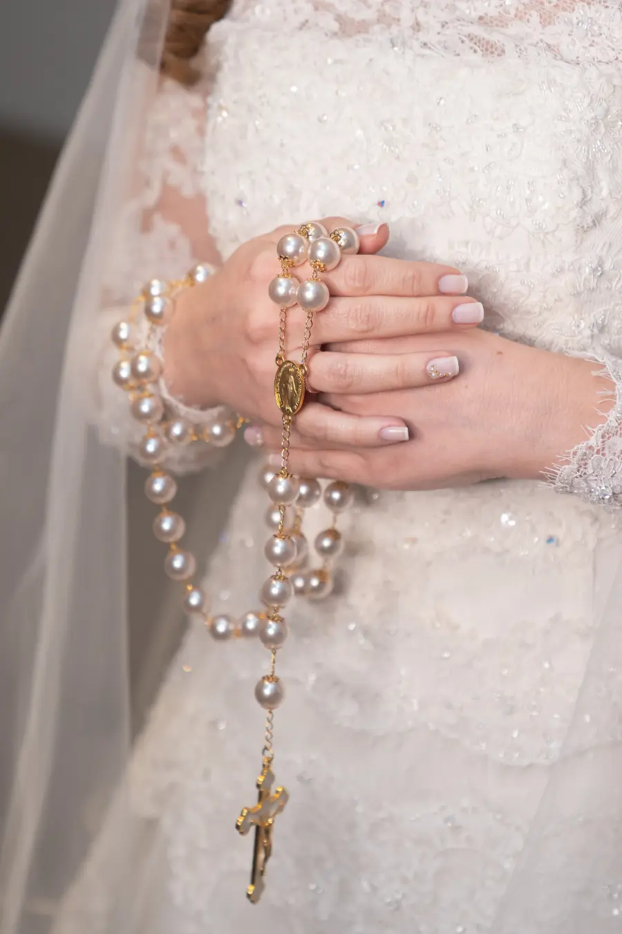 No universo dos casamentos, o terço passou a ser incorporado como símbolo de proteção e bênção para a nova família que se inicia.