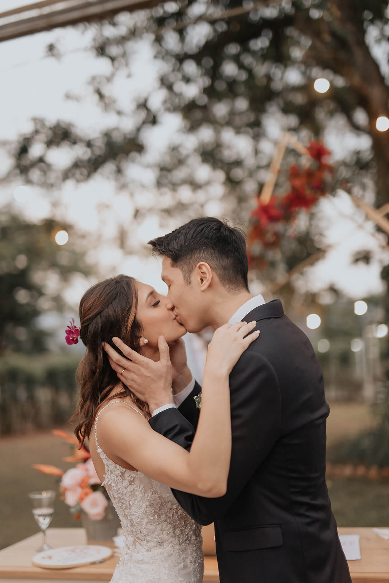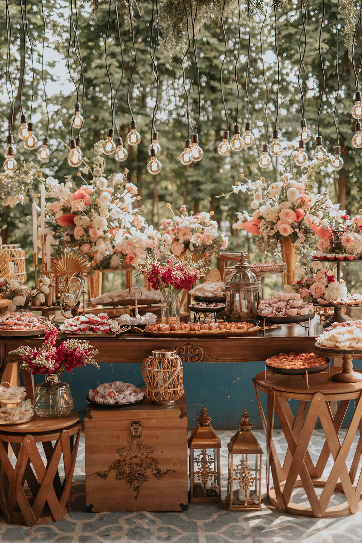 A paleta terracota é praticamente a cara metade dos casamentos de outono, mas aqui ganha tons neutros e também o romantismo do cor de rosa. Podemos notar que a mobília mistura um pouco do clássico com o rústico, a combinação perfeita para criar um ambiente acolhedor e elegante.