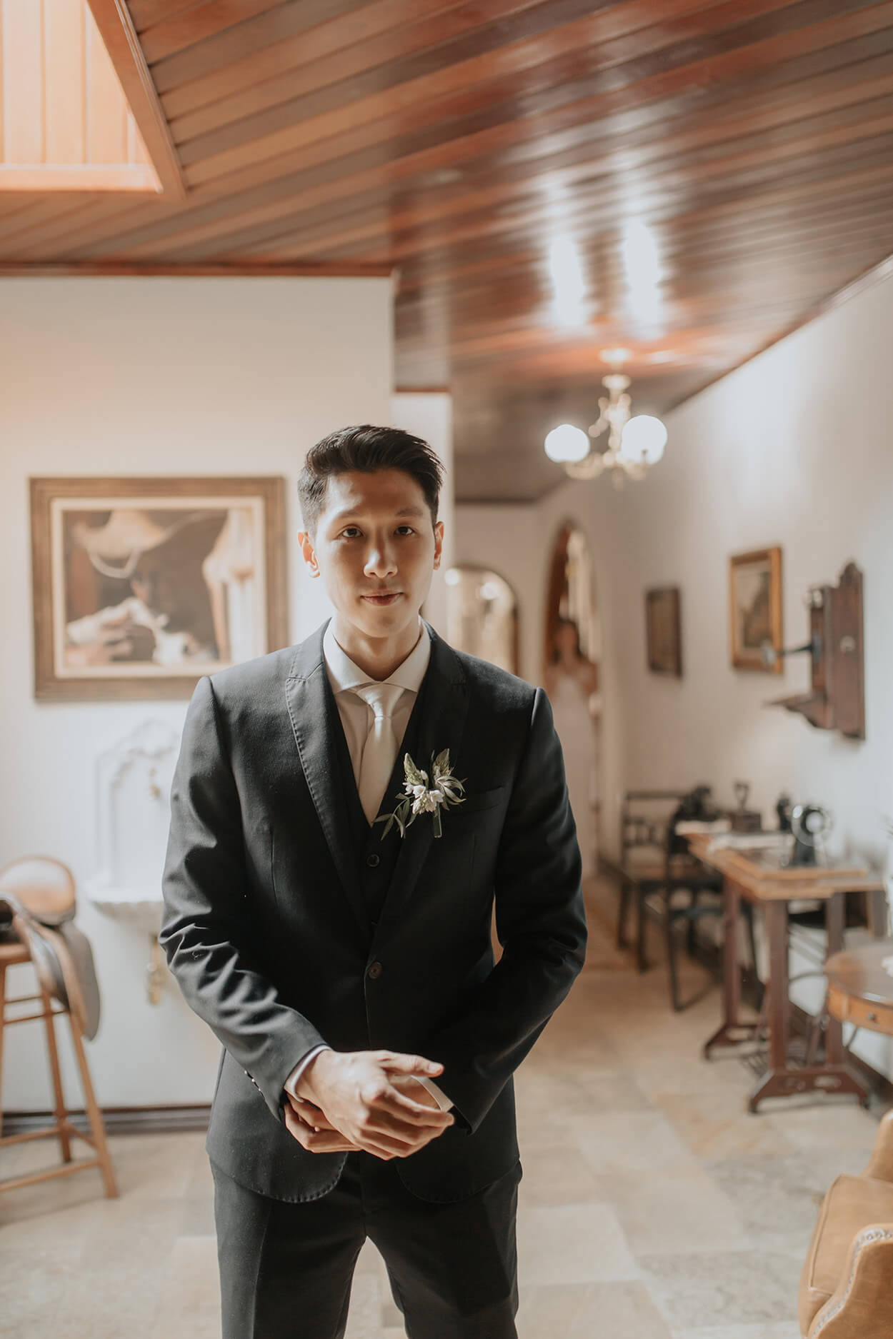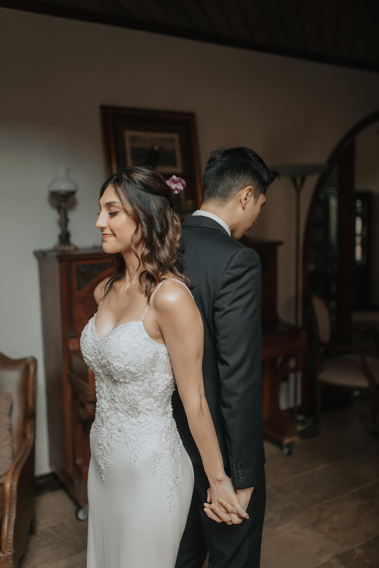Tanto o making of da noiva quanto do noivo foram marcados por cenas emocionantes. A Stephanie teve dois ensaios first look, o primeiro com o seu buquê e o segundo com as suas madrinhas. O casal resolver matar a saudade mas ainda manter certo mistério, por isso optaram por um delicado first touch.
