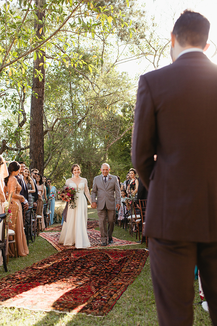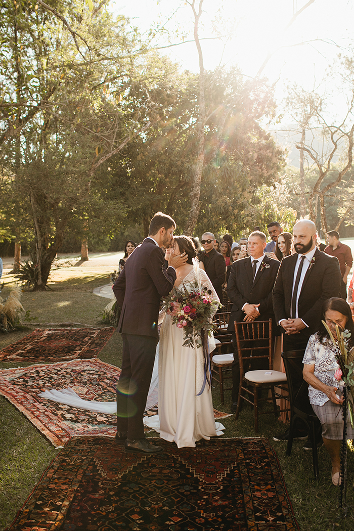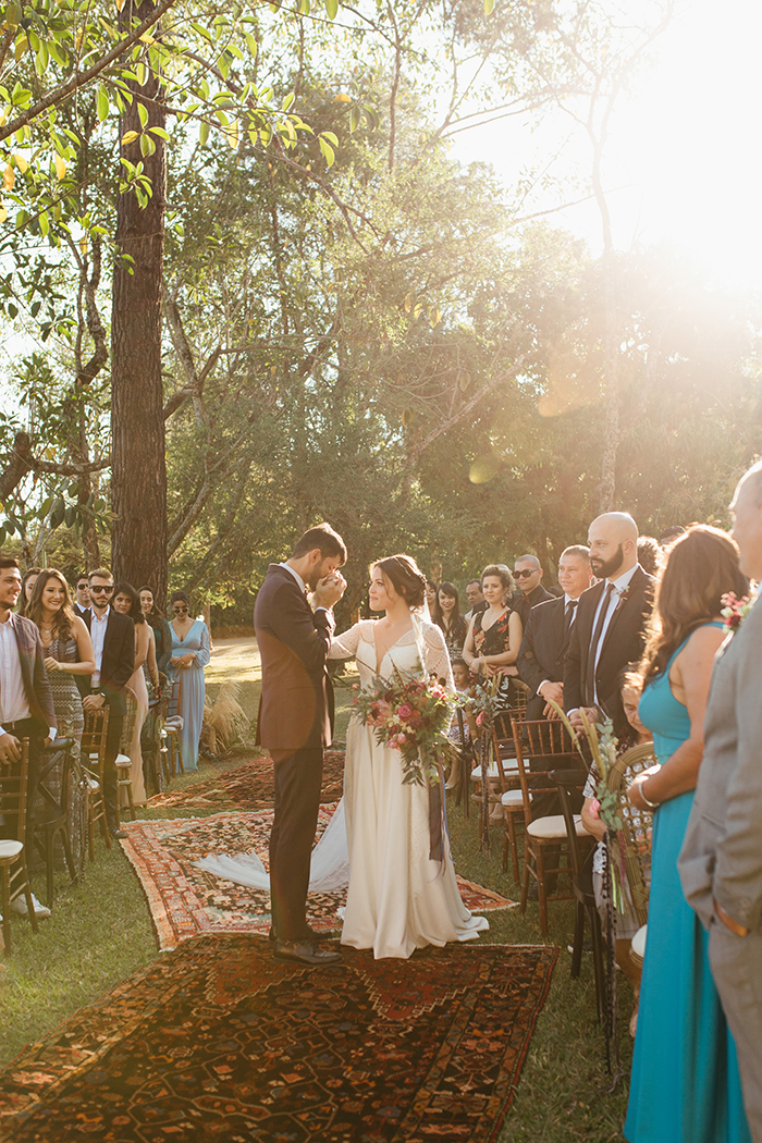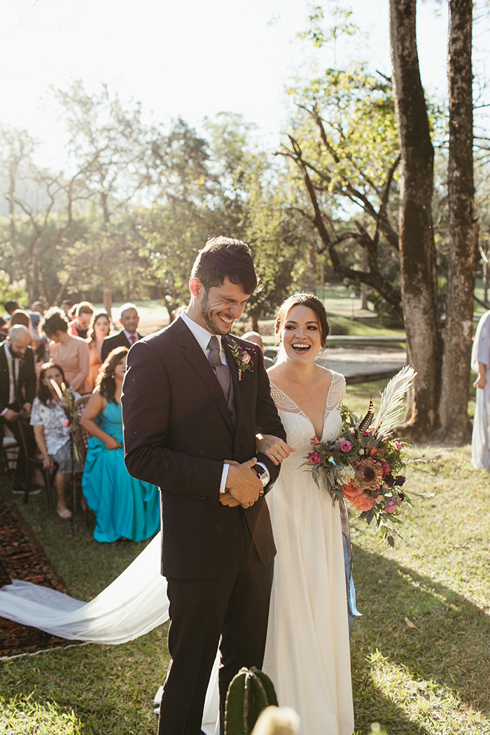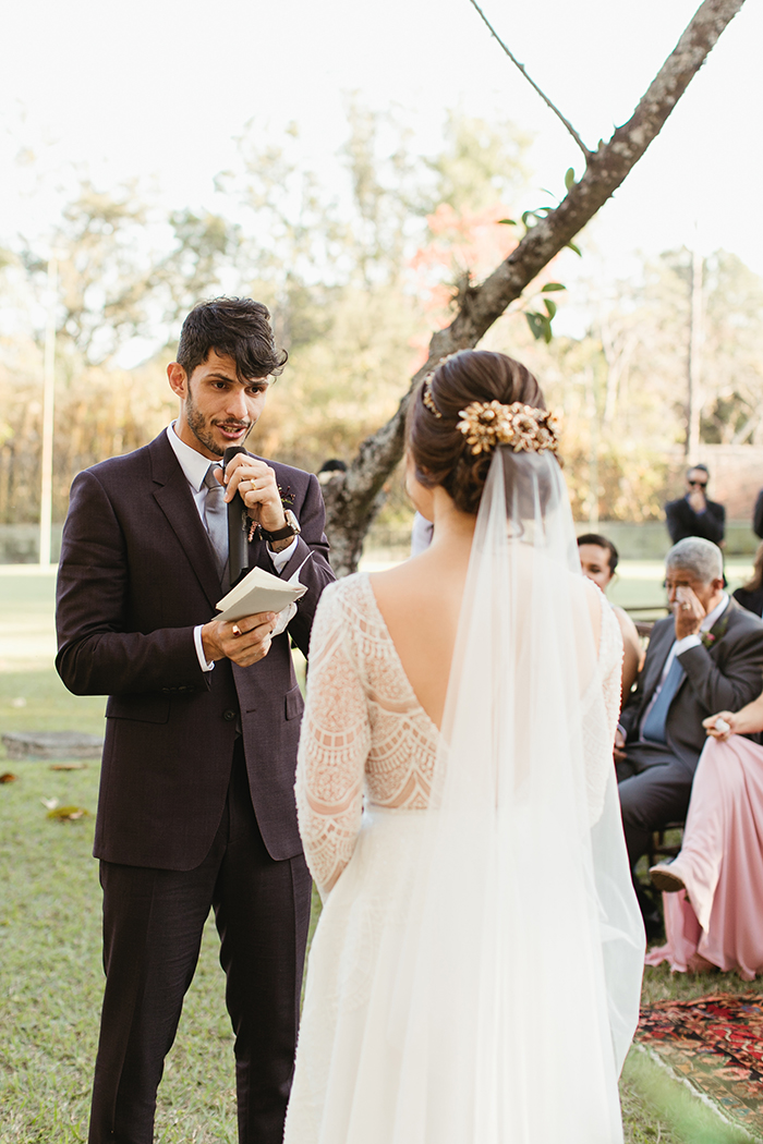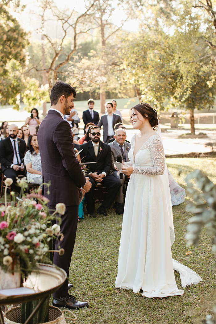 A cerimônia como um todo foi muito especial! Eles escolheram nos sentar de frente para os convidados para poder ver a reação de cada um deles durante a cerimônia. Foi a melhor escolha que fizeram! “Nós rimos e nos emocionamos muito e pudemos ver que eles também!”