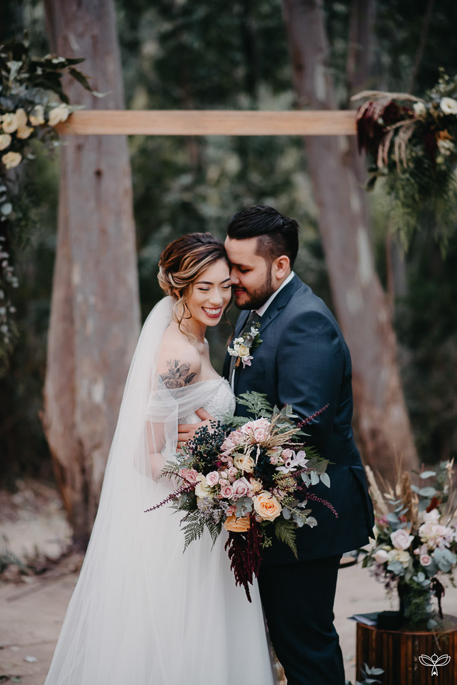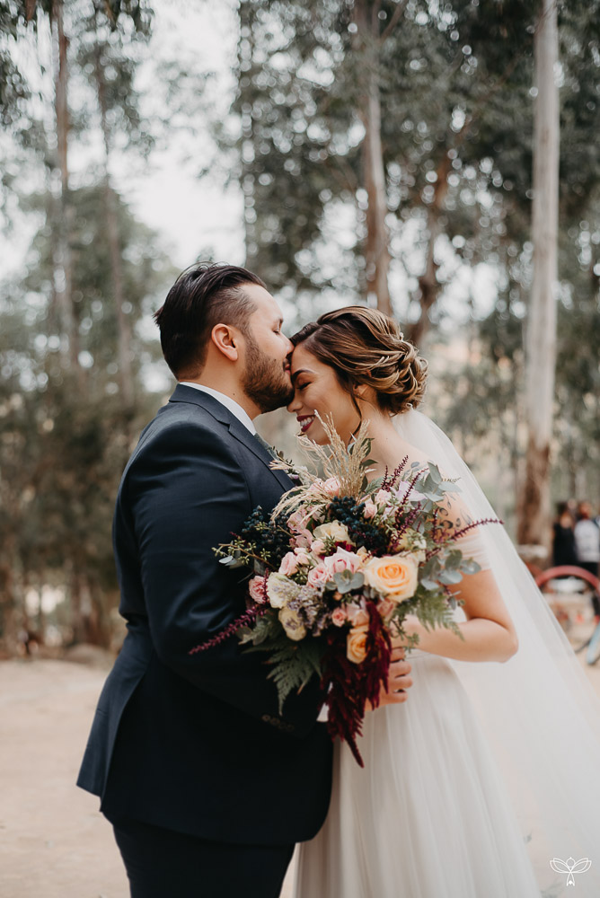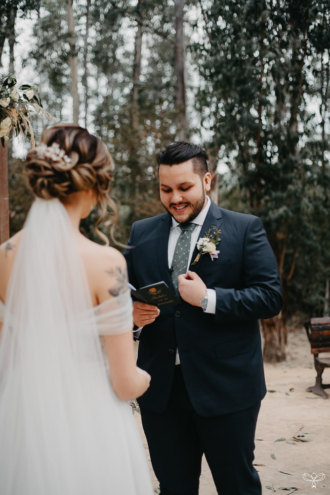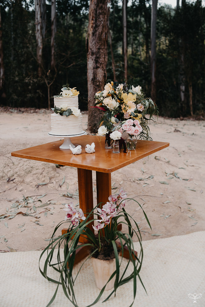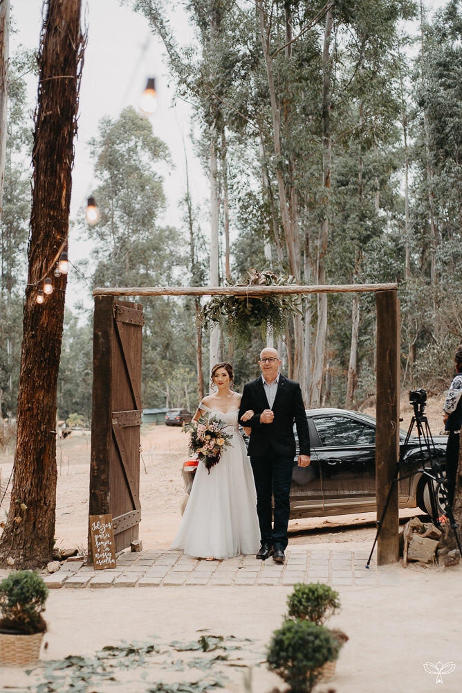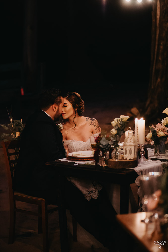 Escolheram dizer SIM no meio da floresta, sob o esplendor da natureza numa tarde encantada. Para harmonizar com o espaço, escolheram uma decoração rústica, em tons de branco, pastel, verde, marsala e azul.