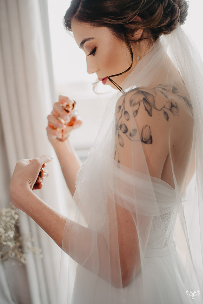 “Foi horrível não poder fazer nada e, pior ainda, saber que corríamos o risco de não ter uma festa no ano de 2020, pois ninguém sabia como a pandemia se desenrolaria. Mas, otimistas, decidimos mover nossa data para agosto de 2020, pensando que as coisas já estariam melhores.” Quando julho chegou e foi anunciada que na região deles ainda estava na fase amarela, decidiram mudar os planos oficialmente para não terem que adiar o casamento mais um ano. “Foi um processo terrível para mim aceitar que o casamento já não seria mais como planejamos. Mas com o passar do tempo, meu coração foi se acalmando e entendi que mais importante do que um casamento com uma cerimônia e uma festa para 150 convidados, era iniciar nossa jornada juntos.”