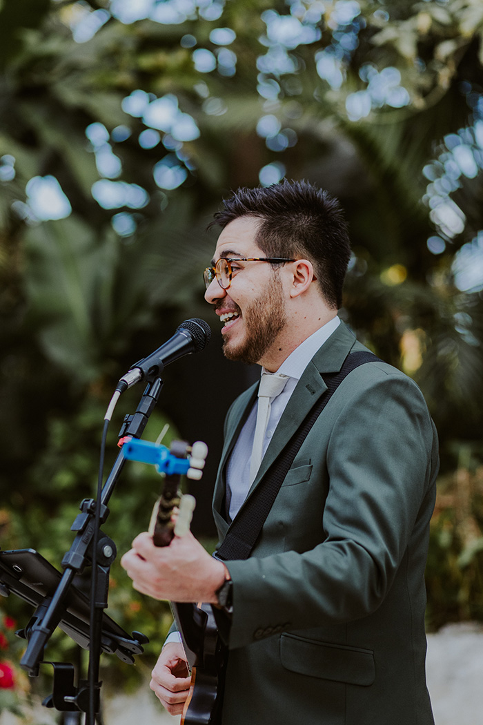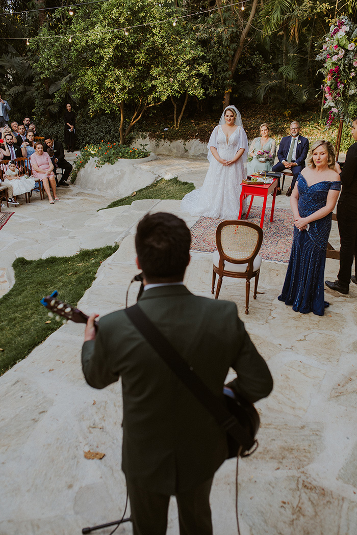 O Renato é compositor e compôs uma música para cantar na hora dos seus votos. Foi lindo. Ele soube deixar o dia mais inesquecível. Além disso, algumas músicas da cerimônia eram de autoria dele. Dava pra ver os convidados cantando baixinho quando as canções eram tocadas. Foi emocionante!