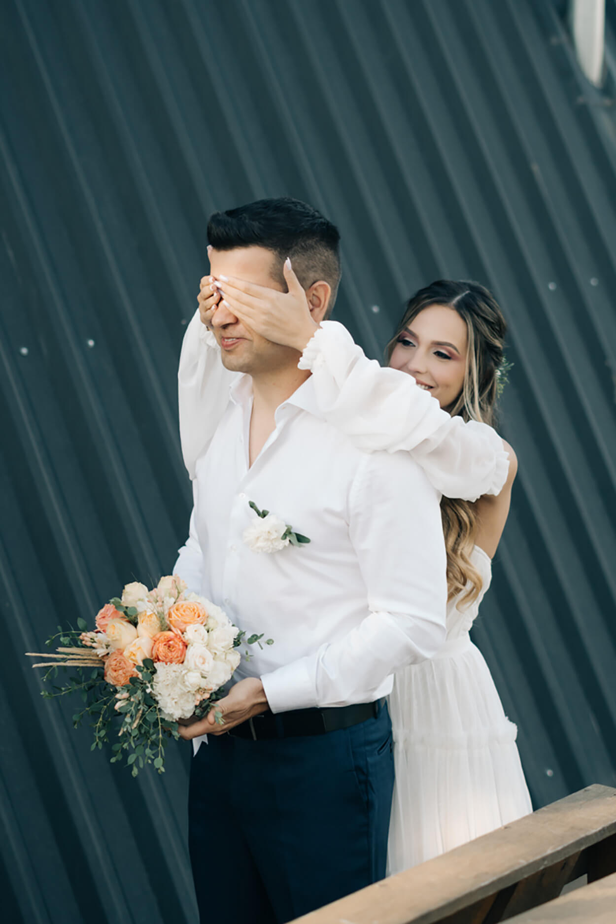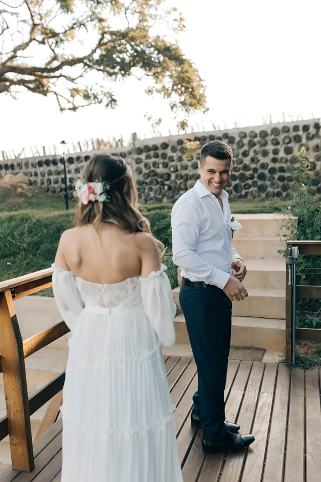 Tudo bem que para muitos noivos, o melhor é ver o seu amor só no altar. Mas o first look é uma oportunidade dos noivos se conectarem antes da cerimônia. Levando em conta que esse é um elopement, faz ainda mais sentido trocar os votos somente um para o outro.