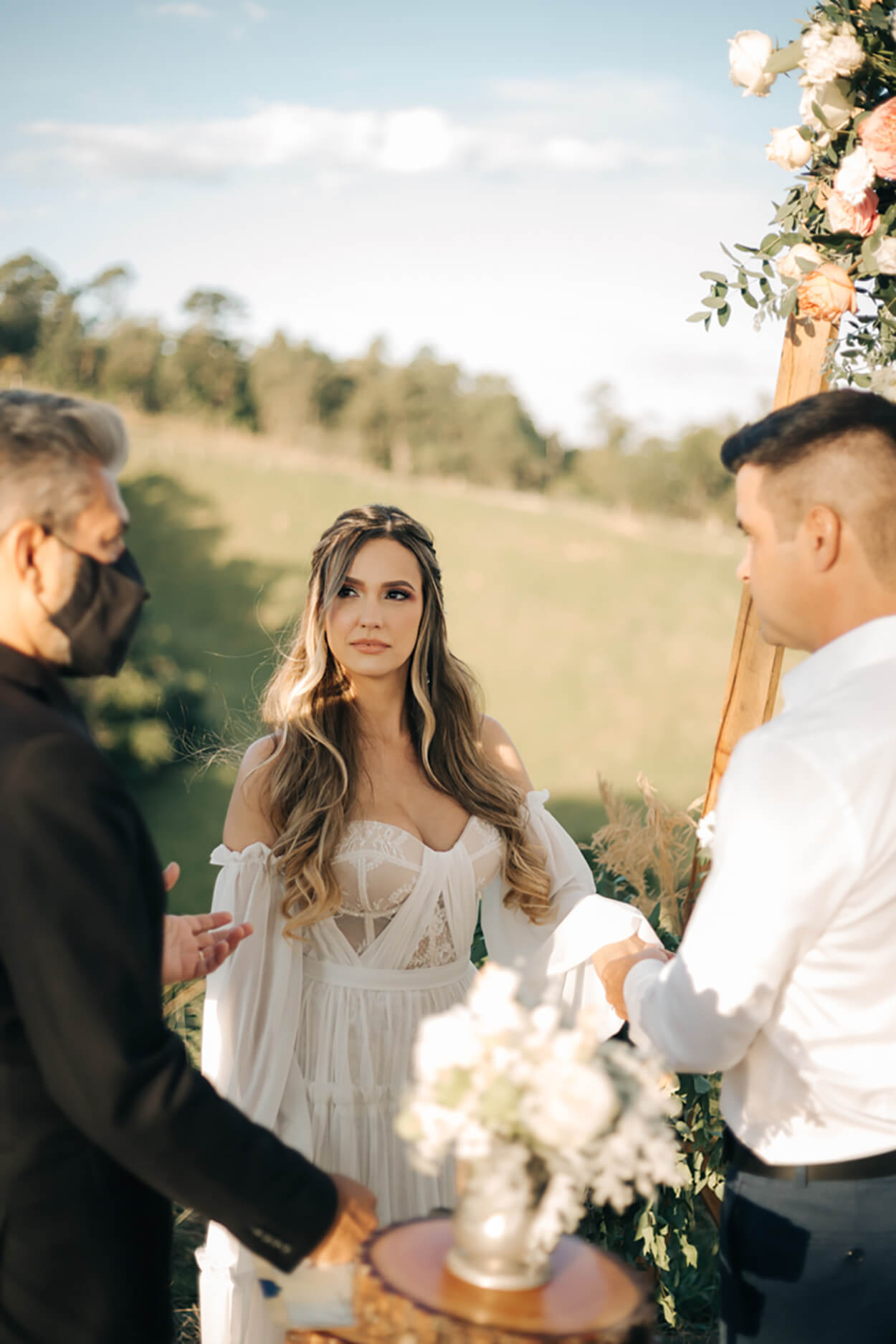 Já se foi o tempo em que casar na igreja era obrigatório, afinal, o amor pode ser celebrado em todos os lugares. E, no caso da Jessica e do Ricardo, o lugar perfeito era uma cabana com uma bela vista vista para o campo.