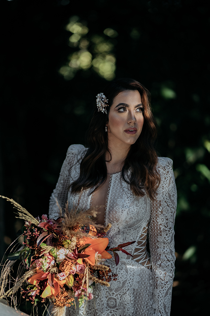 “O mais legal é que eu escolhi quase tudo sem saber que era meu casamento, inclusive o casting de modelos.” Uma semana antes pediram para ela ser a modelo. Marcaram uma prova para o vestido que estavam pensando em usar no editorial. A prova do vestido foi muito emocionante, porque parece que ele foi feito sob medida. Na hora que provou, a Tamylin sentiu um misto de “puts, vou ter fotos com esse vestido e ele seria perfeito para casar de verdade.”