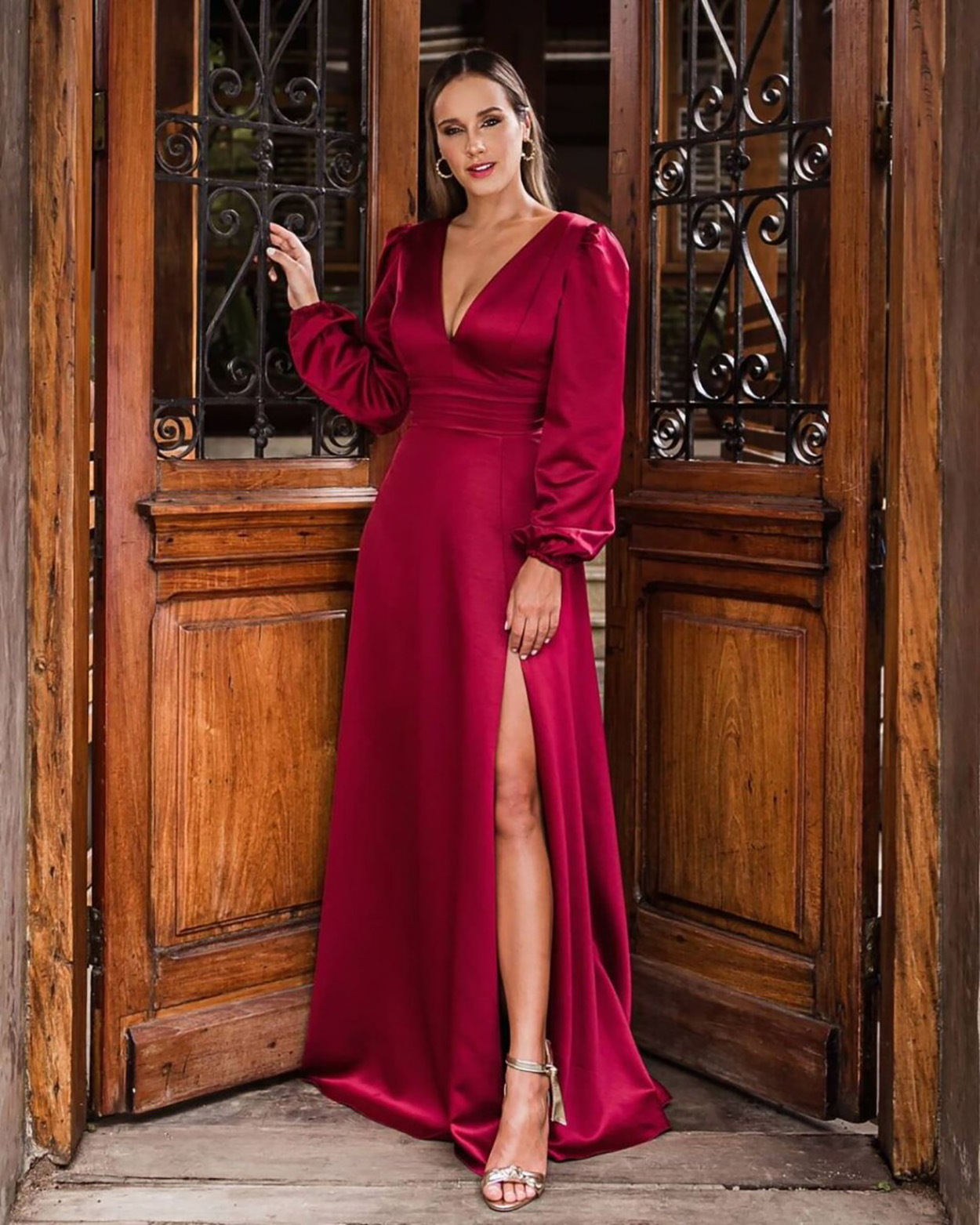 Modelagens diferentes mas com tecidos da mesma tonalidade são um charme! Além disso, as mulheres ficam ainda mais destacadas dos outros convidados. Sem contar que as fotos ficam maravilhosas, né?